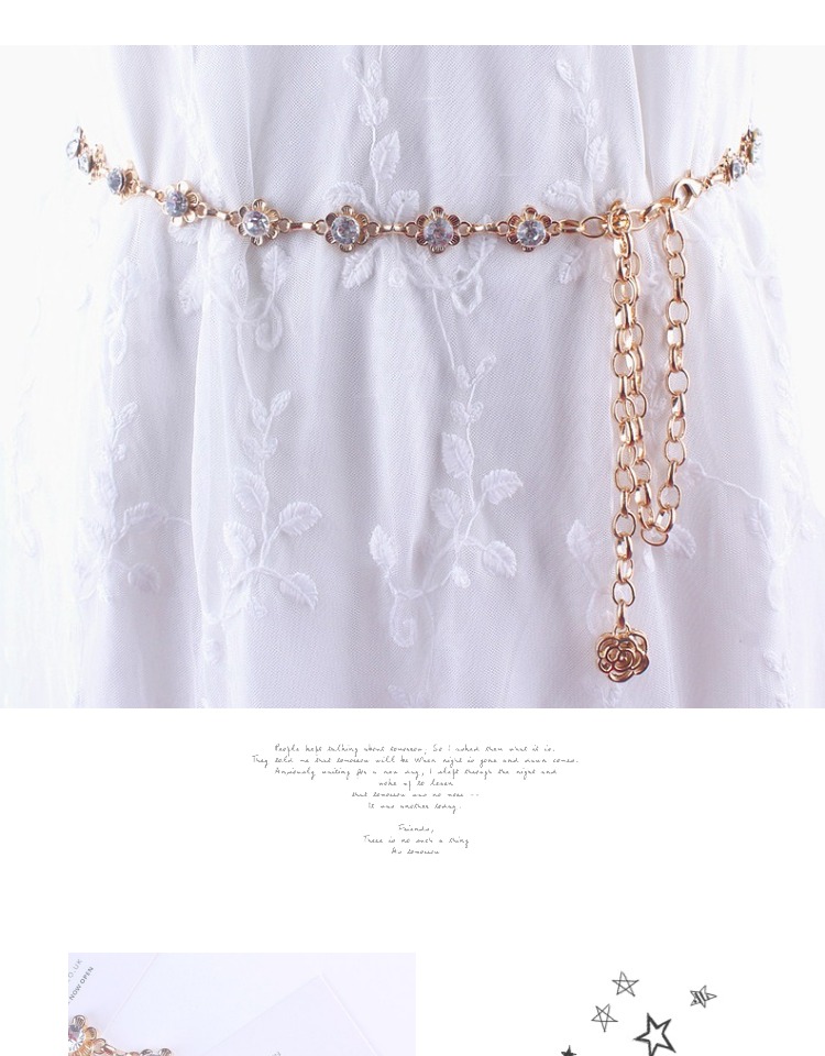 韓國時尚花朵細水鉆腰帶女腰鏈裝飾連衣裙配裙子銀色簡約百搭夏季1入