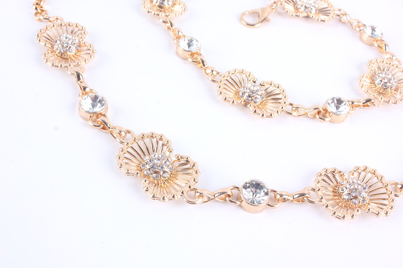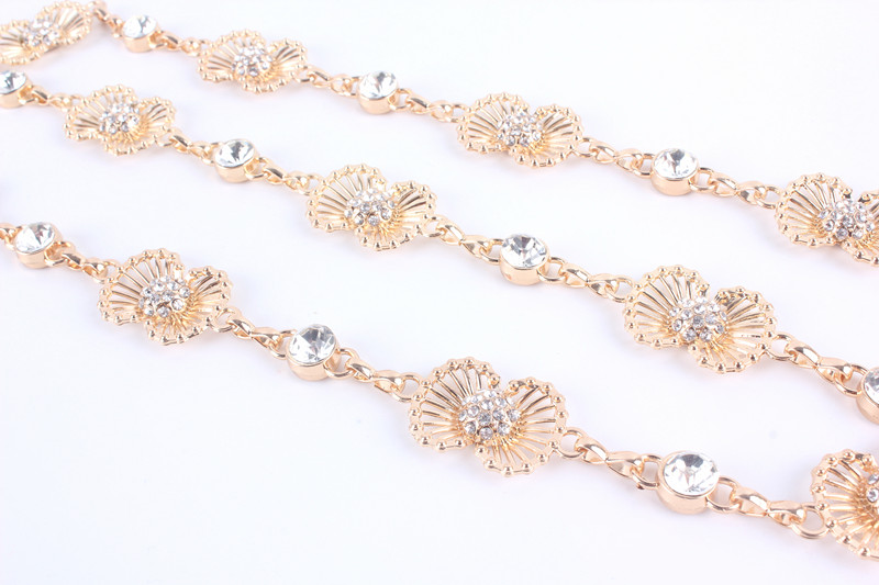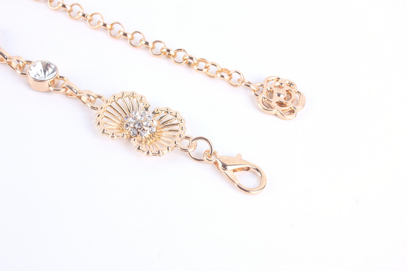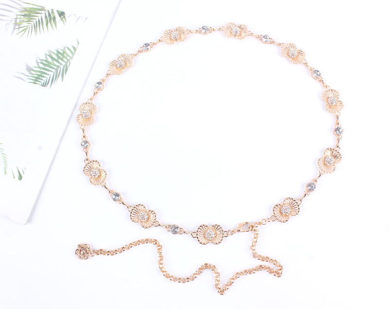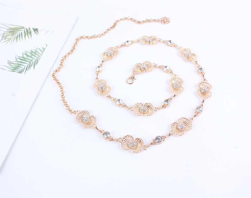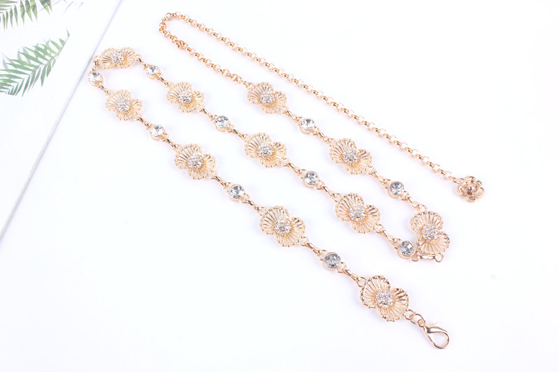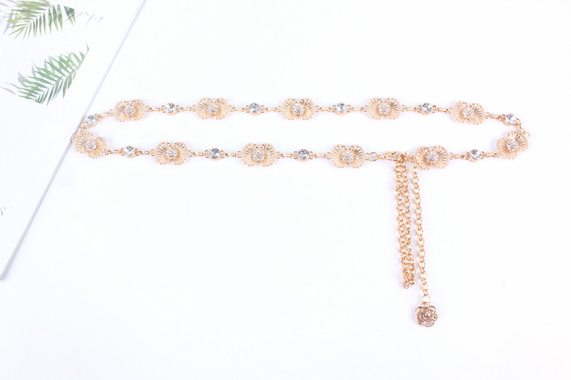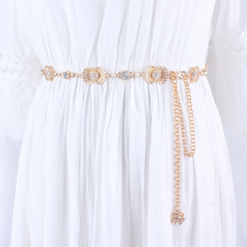 連衣裙腰帶女裝飾百搭配裙子腰鏈配飾韓版時尚細金屬鏈條水鉆鑲嵌1入