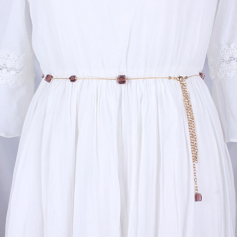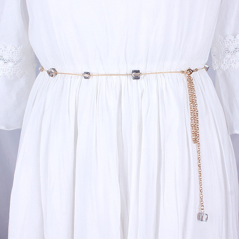 連衣裙裝飾腰帶女細金色韓國時尚水晶腰鏈配裙子毛衣裙帶簡約百搭1入