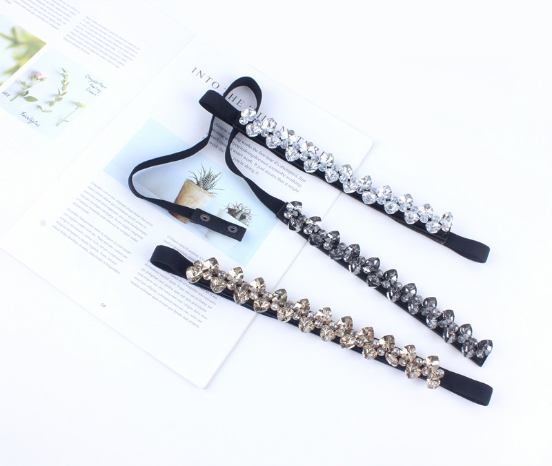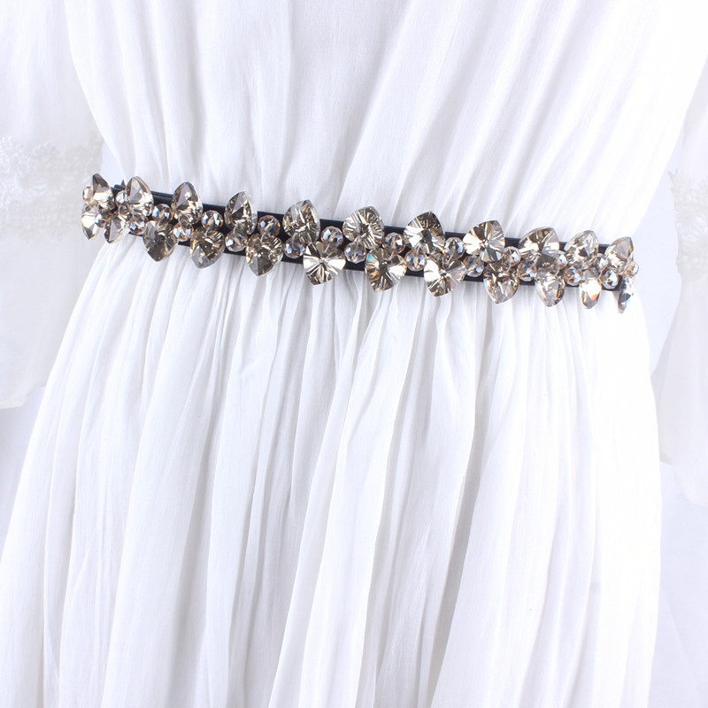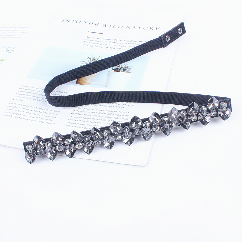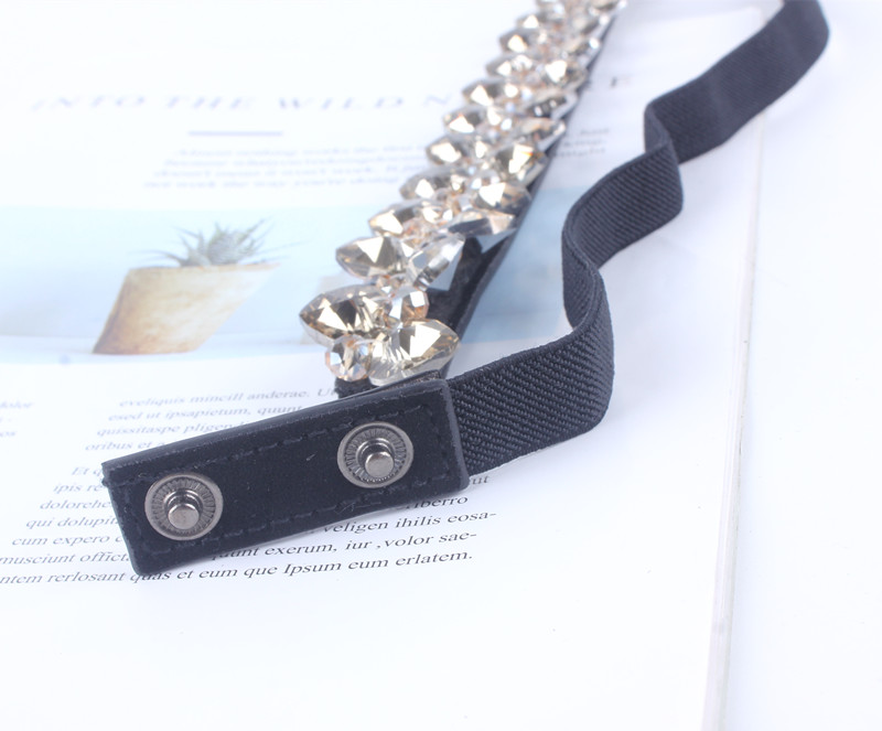 韓版時尚松緊彈力裙子腰封女裝飾連衣裙腰帶黑色外搭鑲鉆皮帶簡約1入