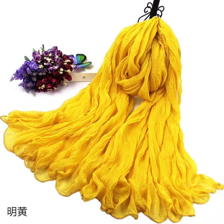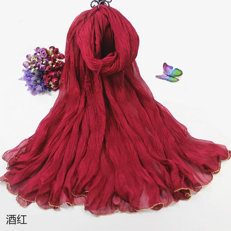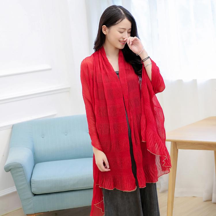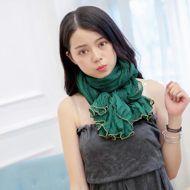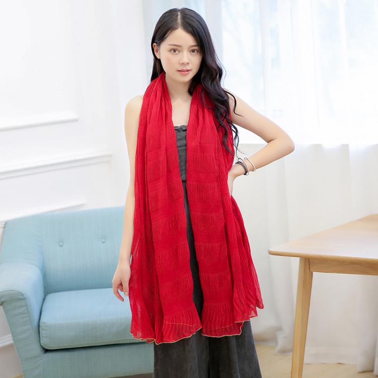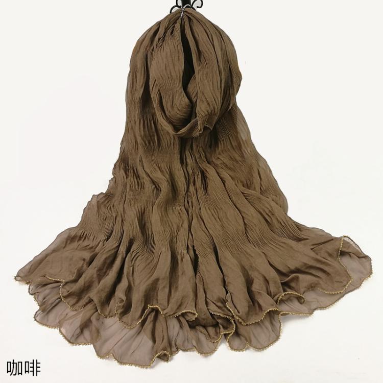 褶皺雪紡圍巾絲巾秋季百搭純色女士韓版薄超大長款春冬季披肩兩用1入