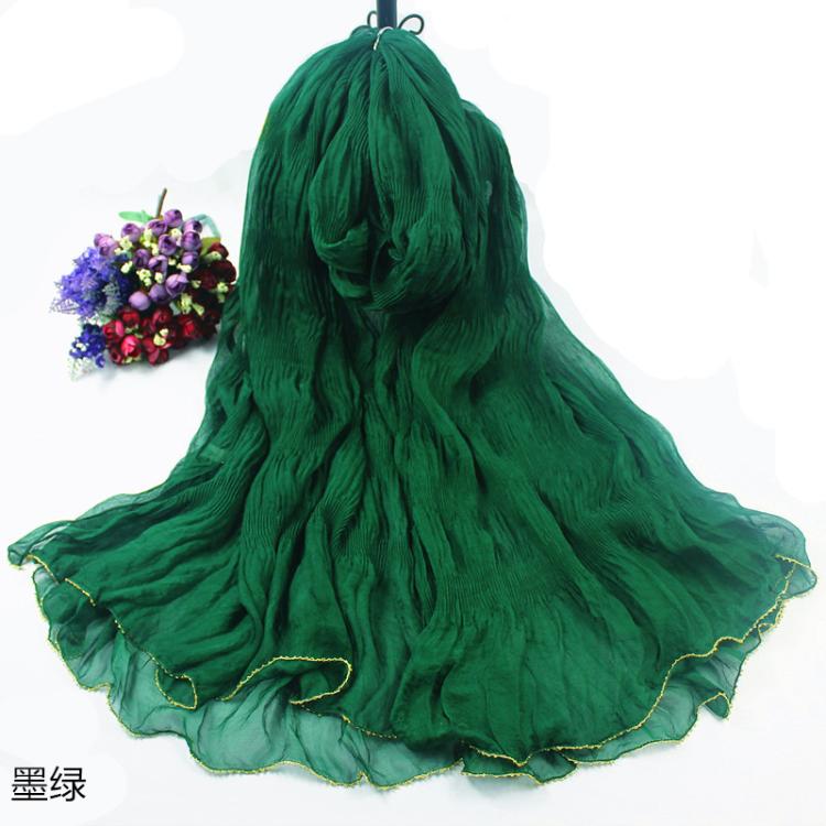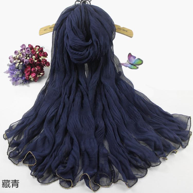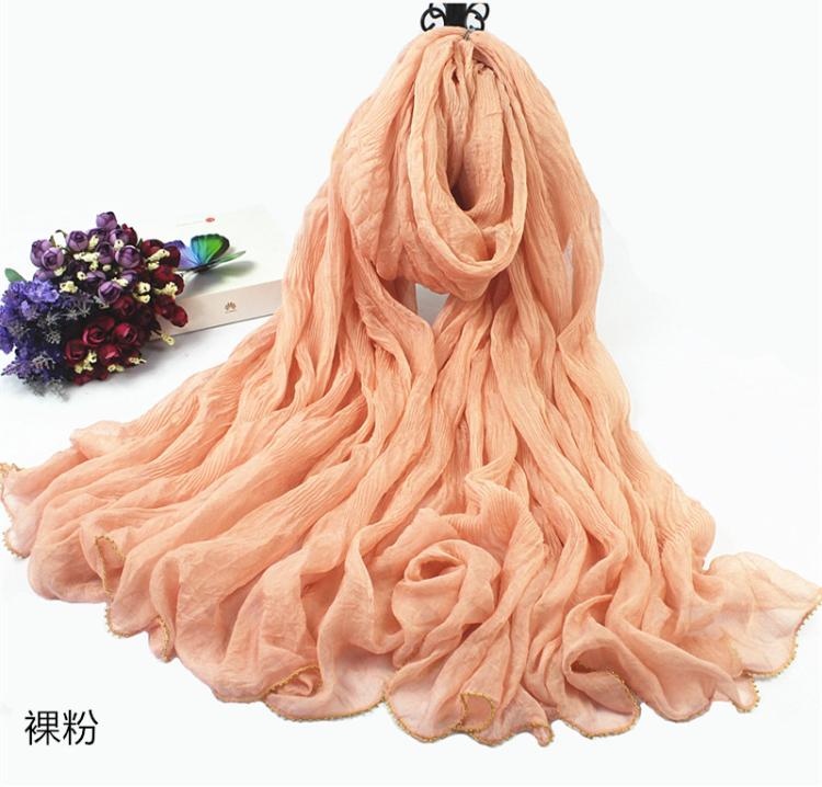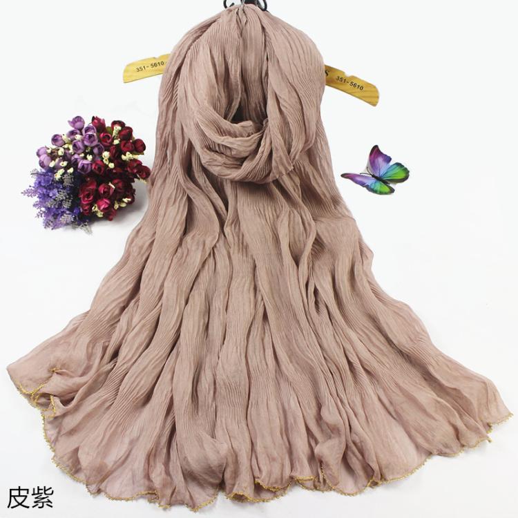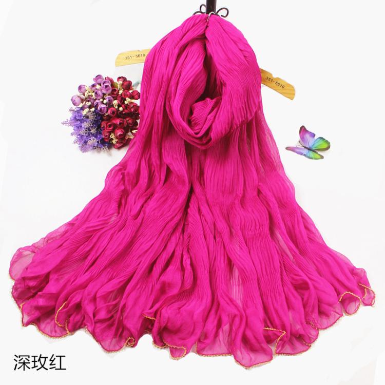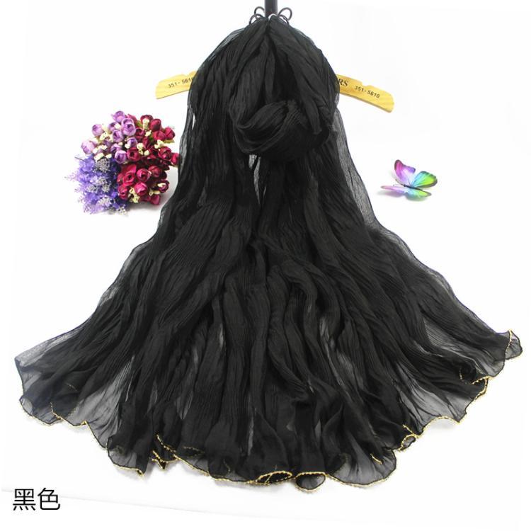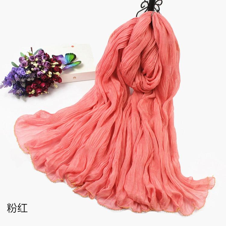 褶皺雪紡圍巾絲巾秋季百搭純色女士韓版薄超大長款春冬季披肩兩用1入
