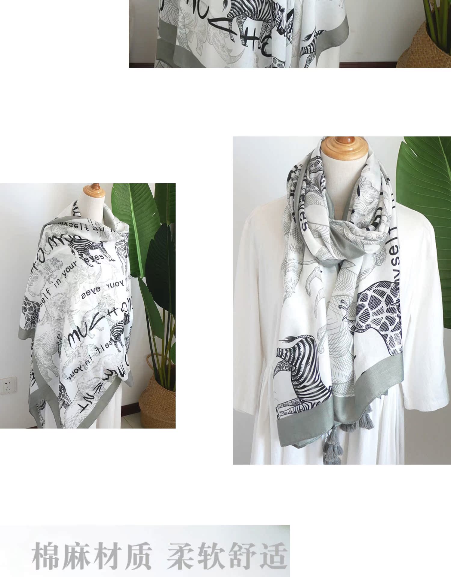 非洲啊非洲 棉麻圍巾女 文藝百搭春秋絲巾 夏季沙灘巾遮陽披肩1入