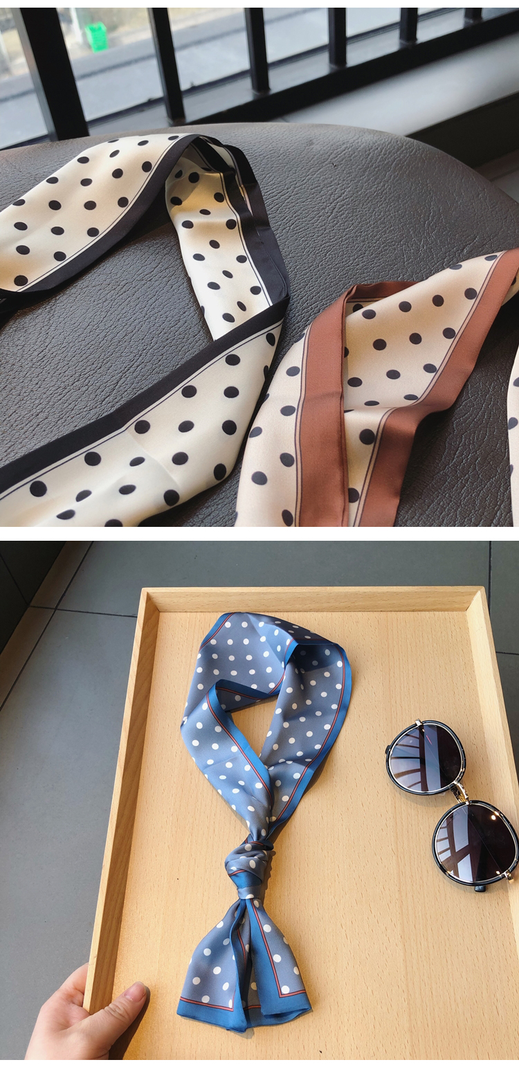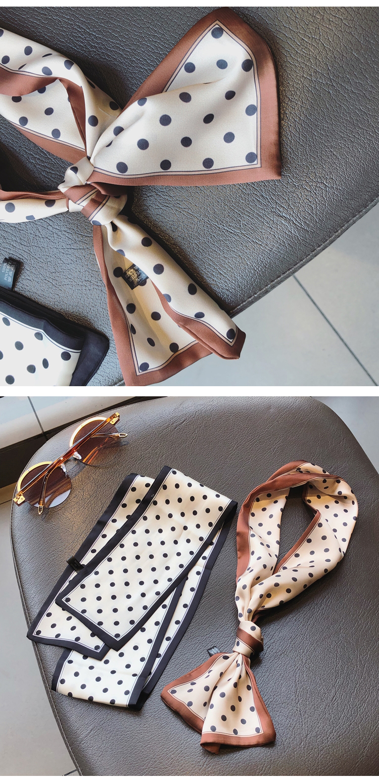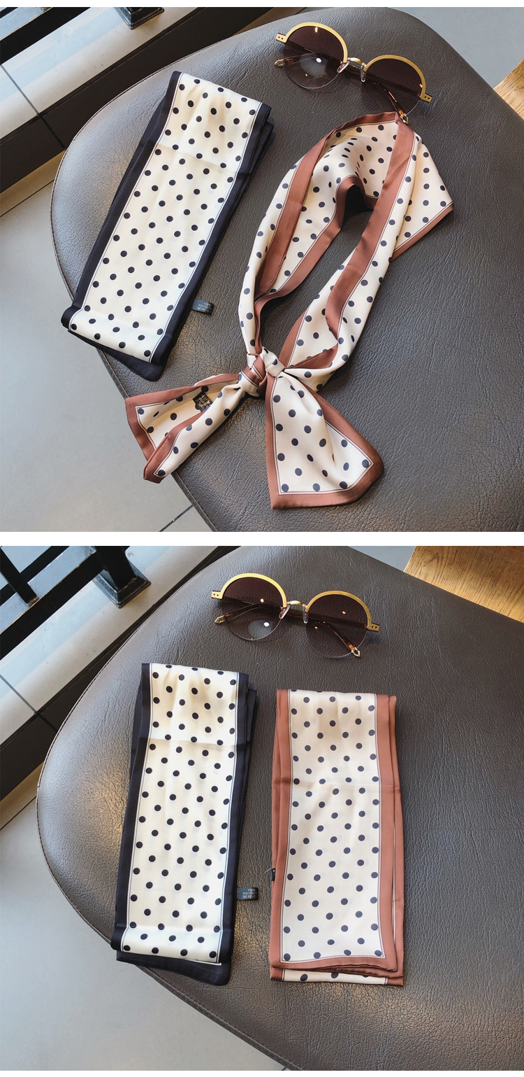 韓版chic風裝飾圍巾女可愛波點小領巾親膚仿真絲綢緞長條小絲巾女1入