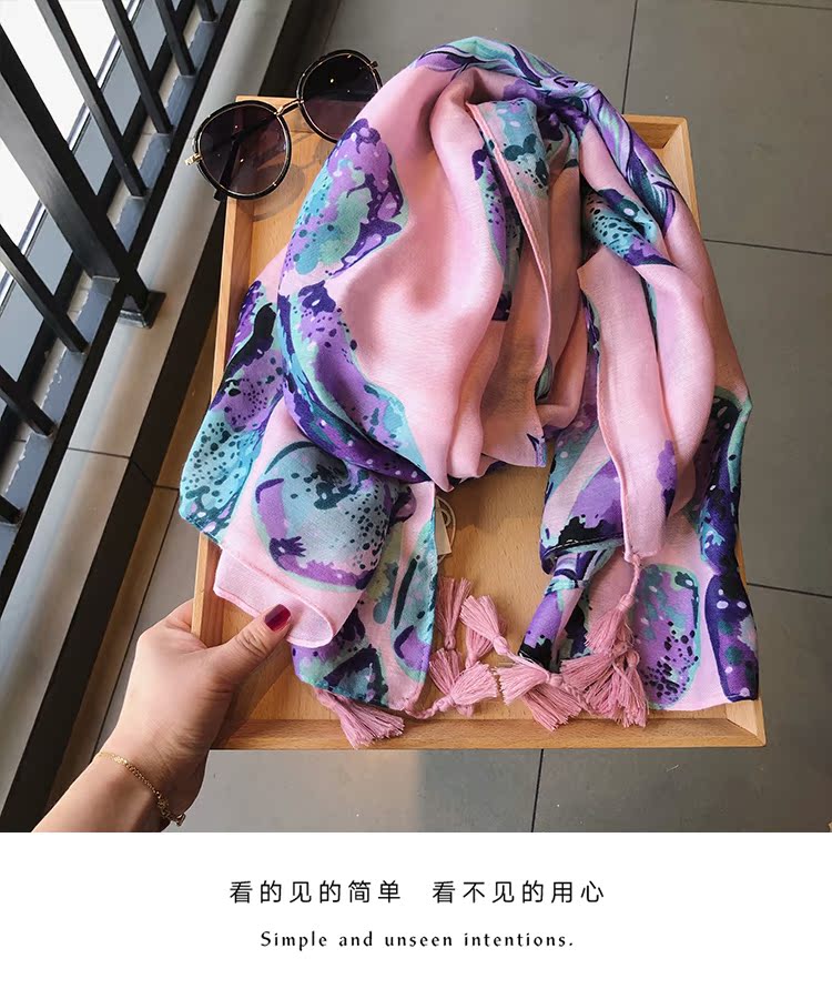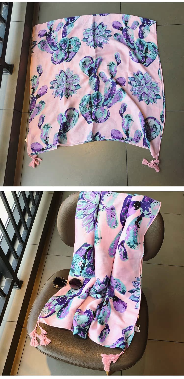 韓版chic圍巾女春夏棉麻手感薄紗巾出游裝飾防曬大披肩印花絲巾女1入