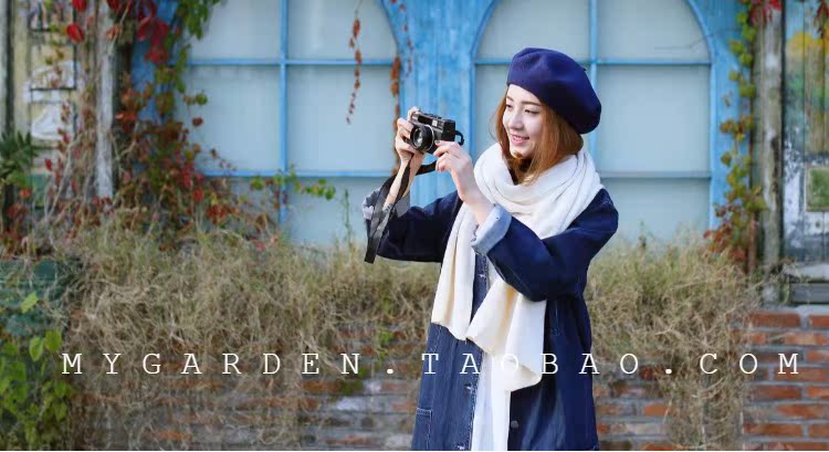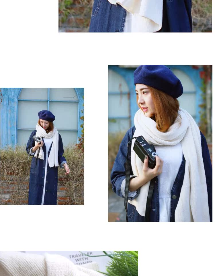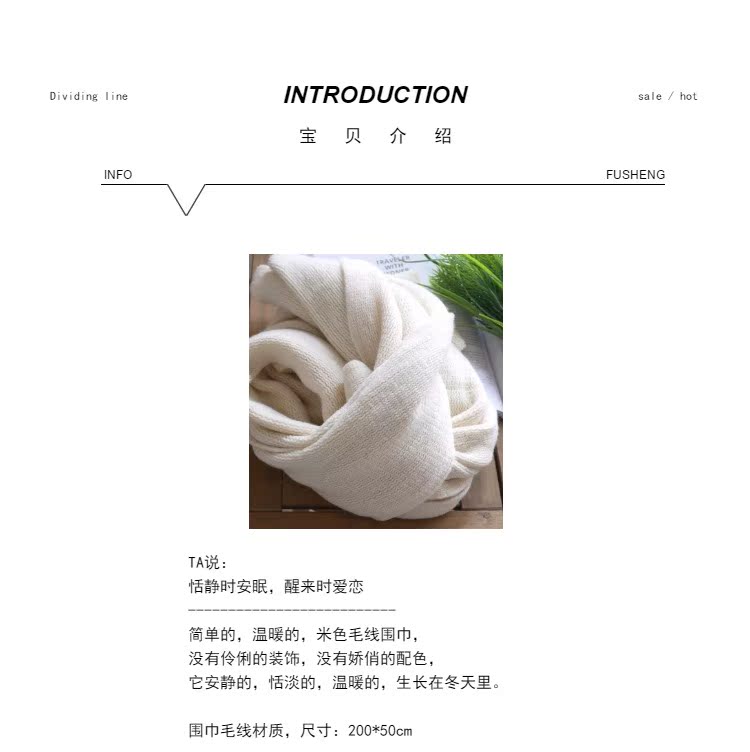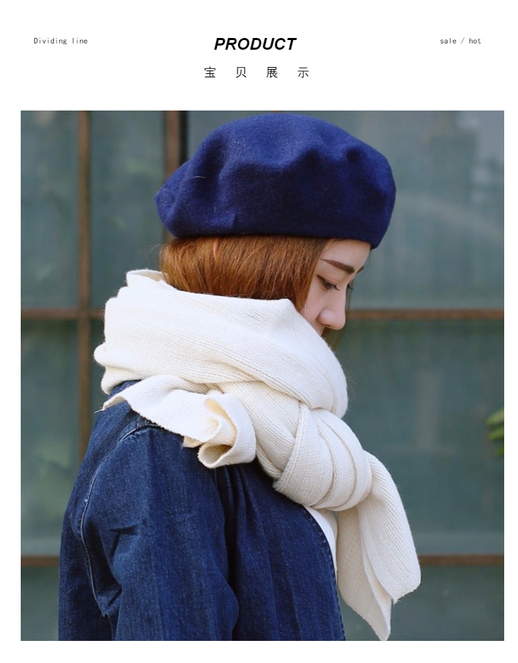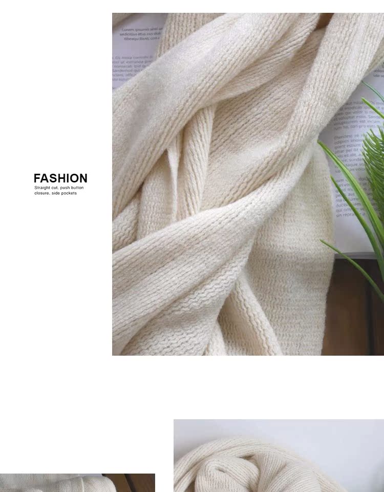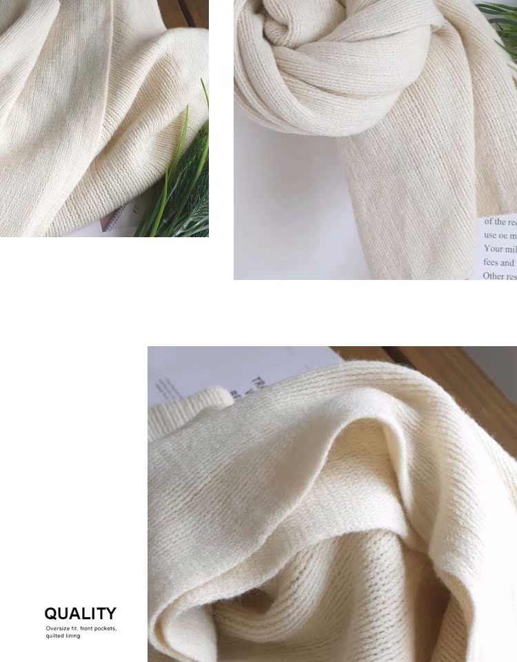 韓版恬靜米色簡約百搭毛線圍巾女 秋冬純色文藝保暖針織長款圍巾1入