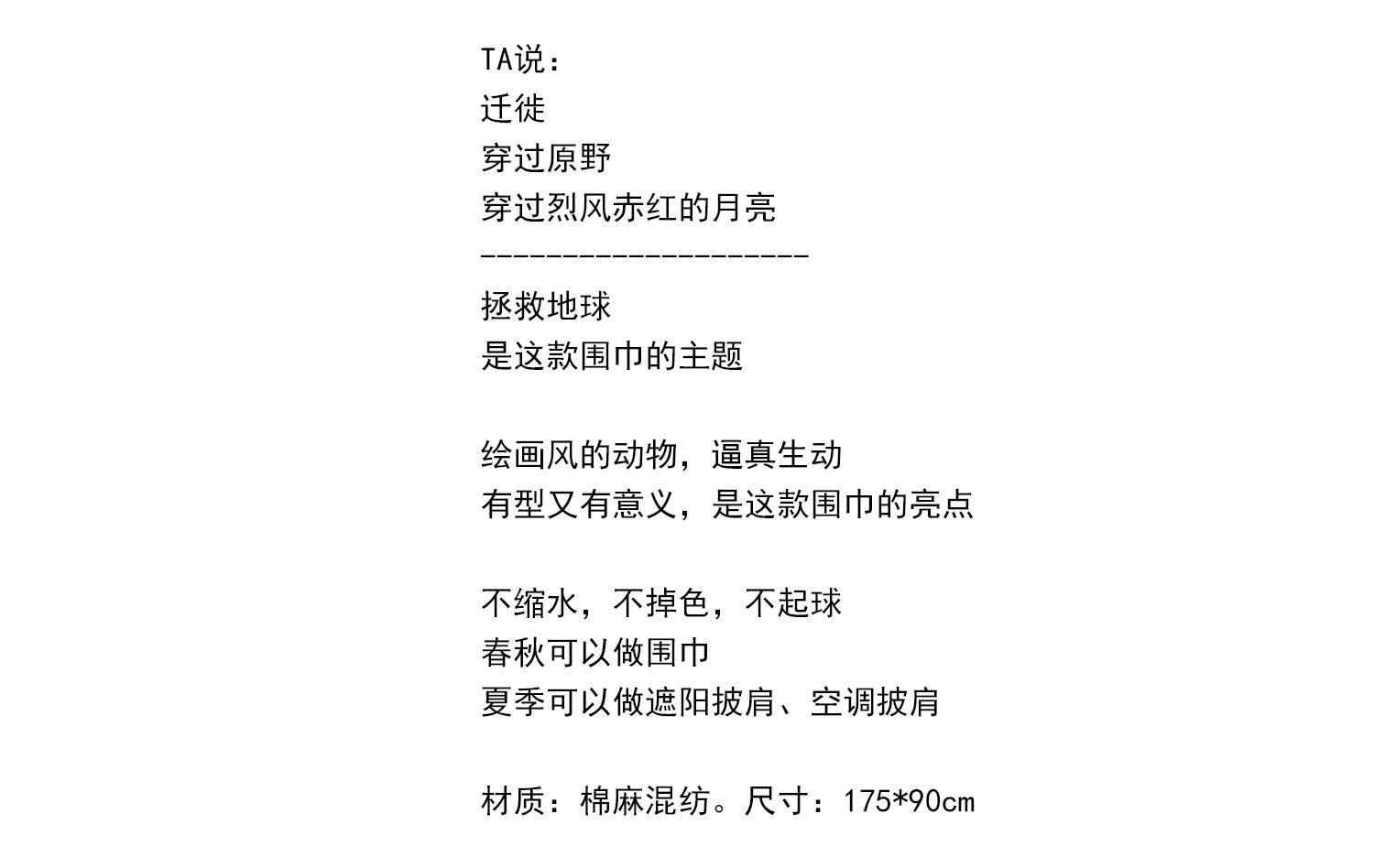遷徙 藝術感插畫棉質圍巾女 日系文藝百搭春秋絲巾 夏季遮陽披肩1入