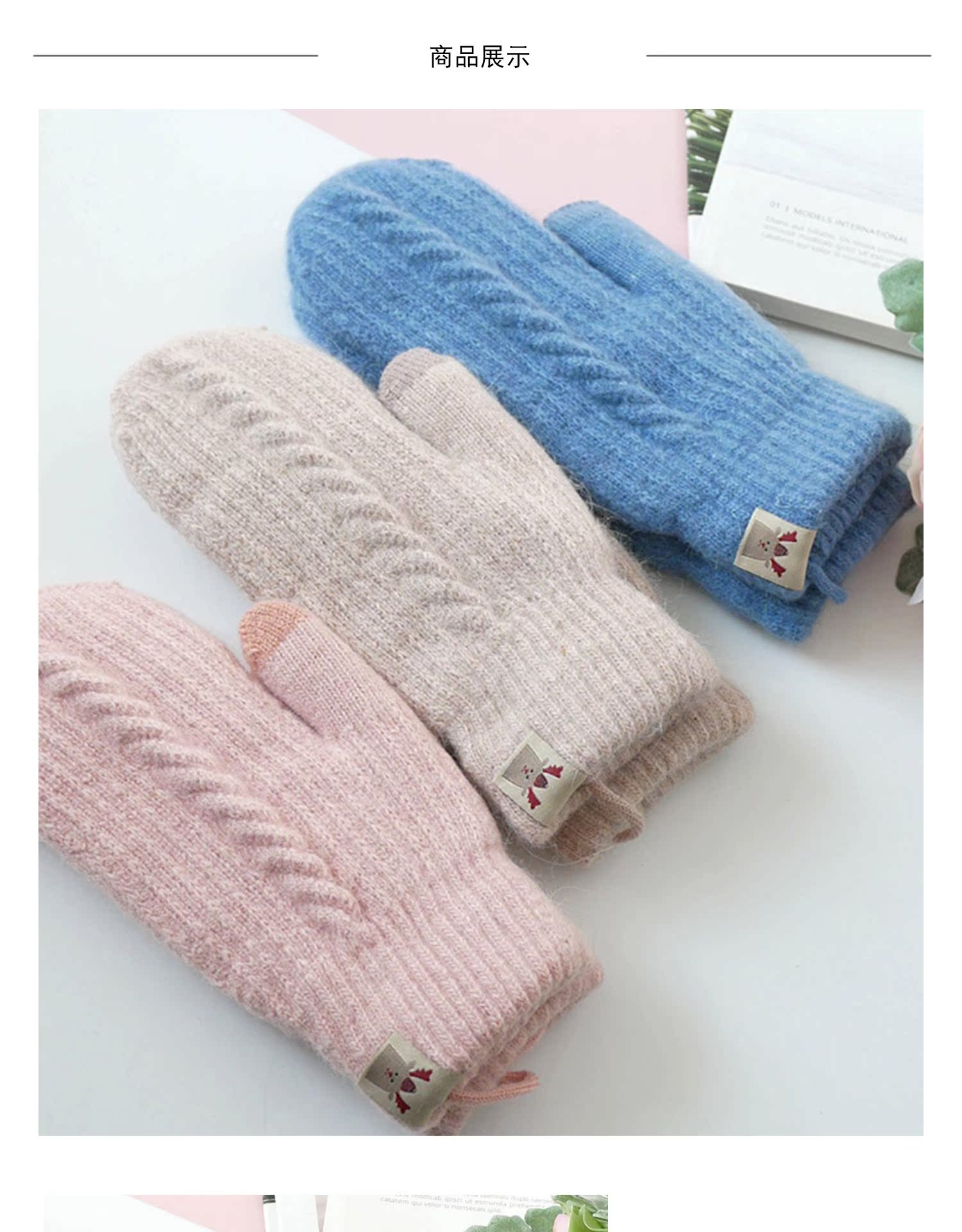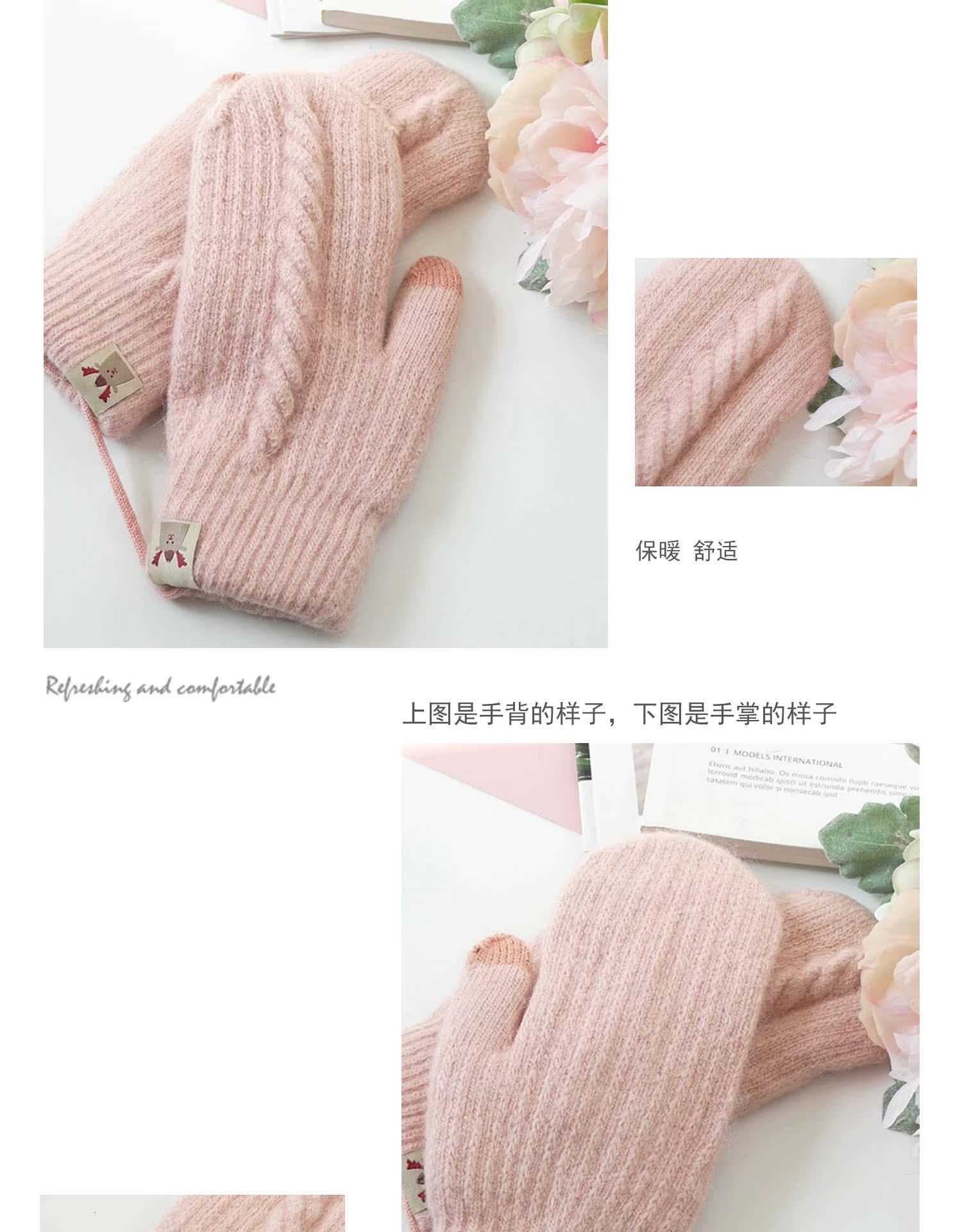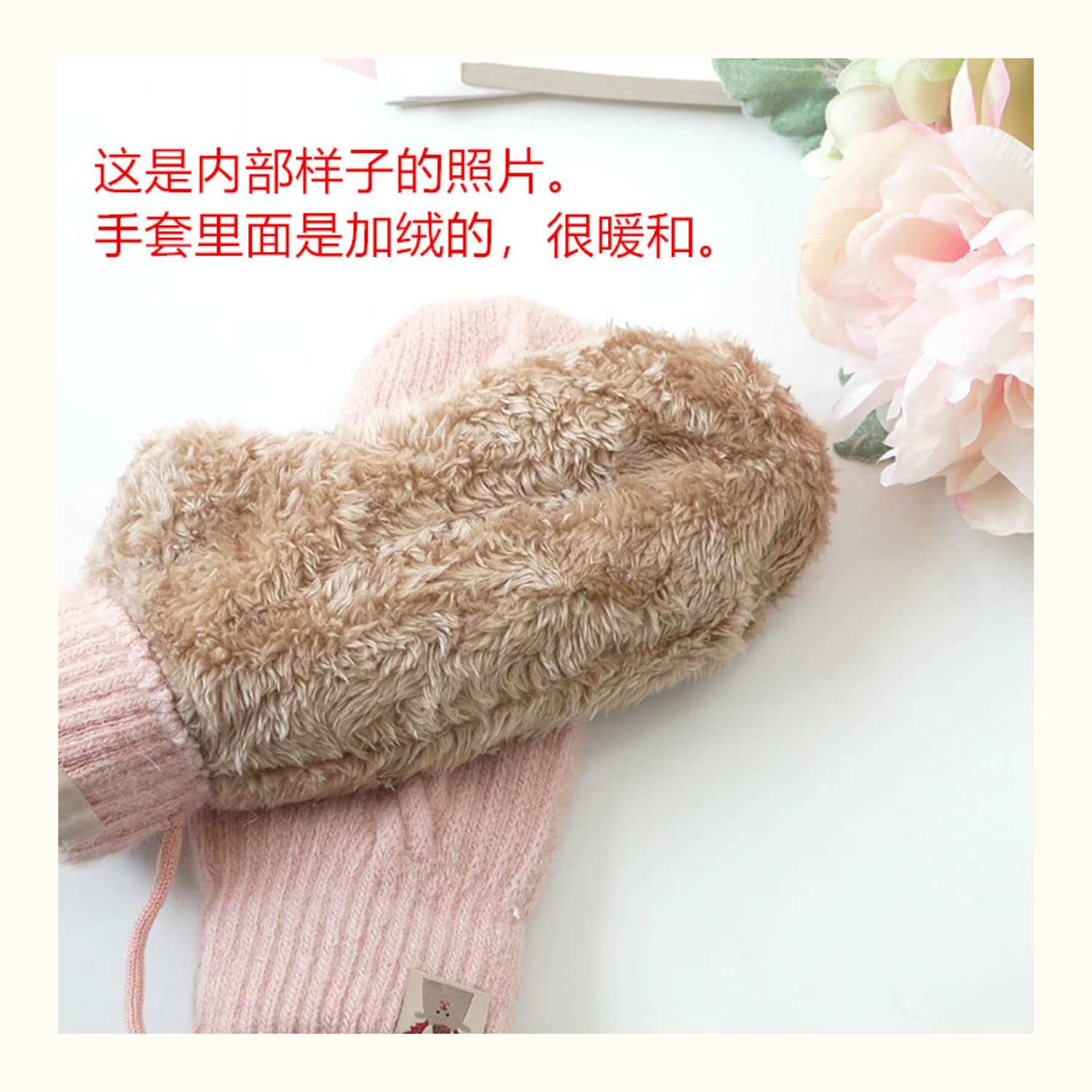 風的試探 清新甜美百搭毛線手套女 19年秋冬新款日系保暖連指手套1入
