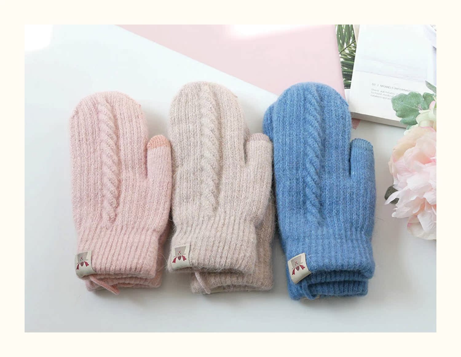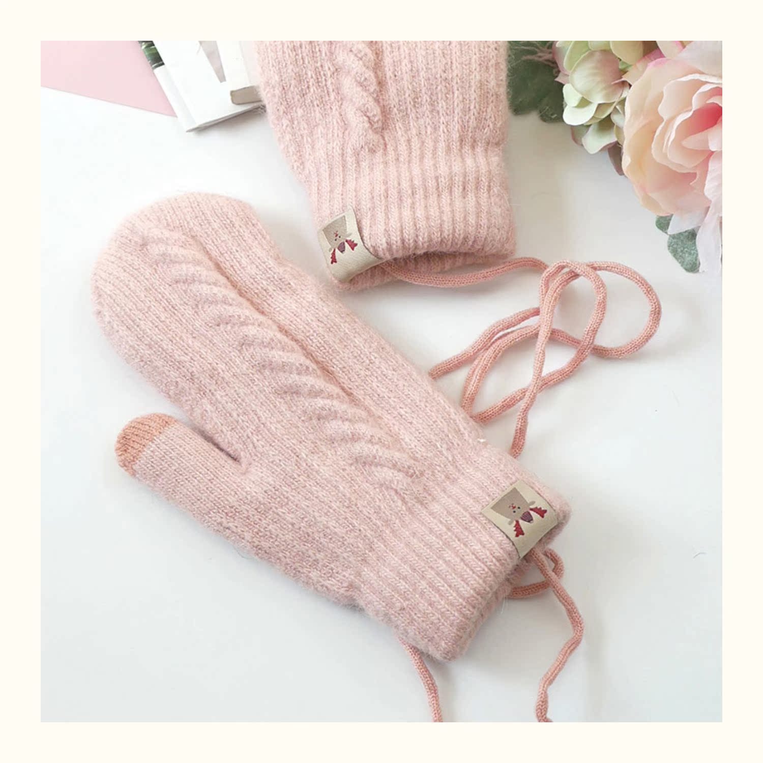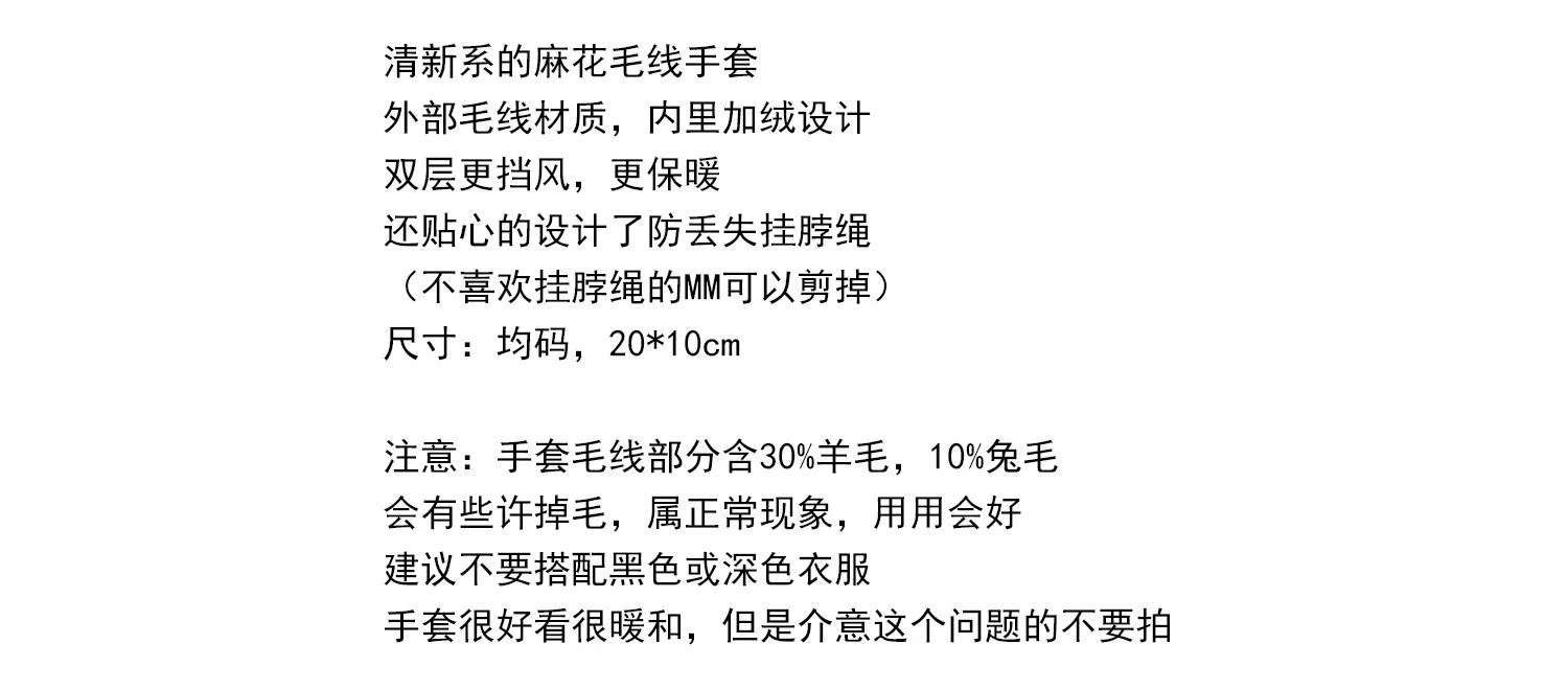 風的試探 清新甜美百搭毛線手套女 19年秋冬新款日系保暖連指手套1入