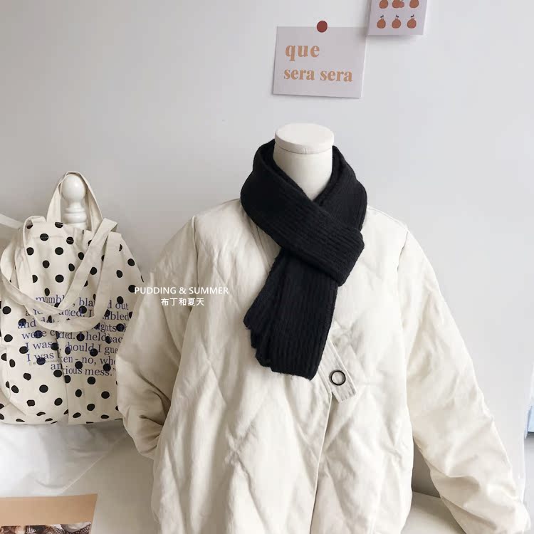 韓國新款簡約純色圍巾毛線小圍脖可繞兩圈不起球情侶學生小圍巾女1入
