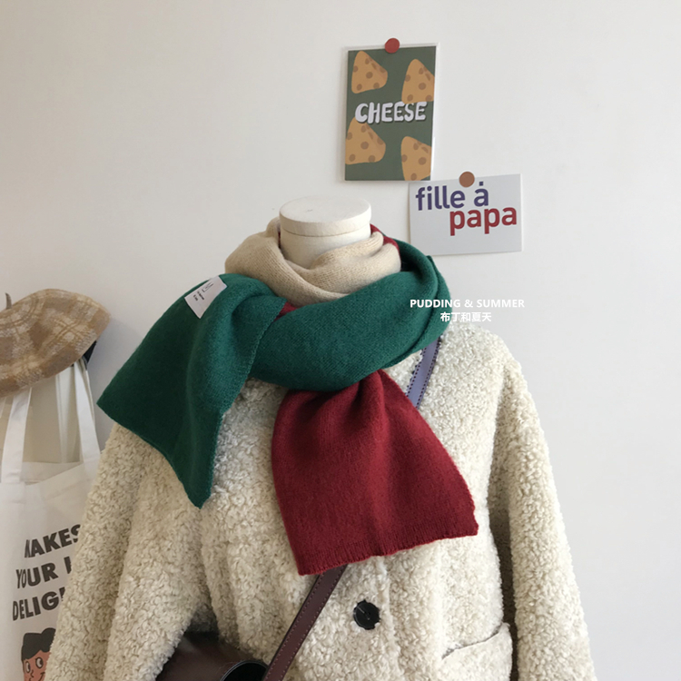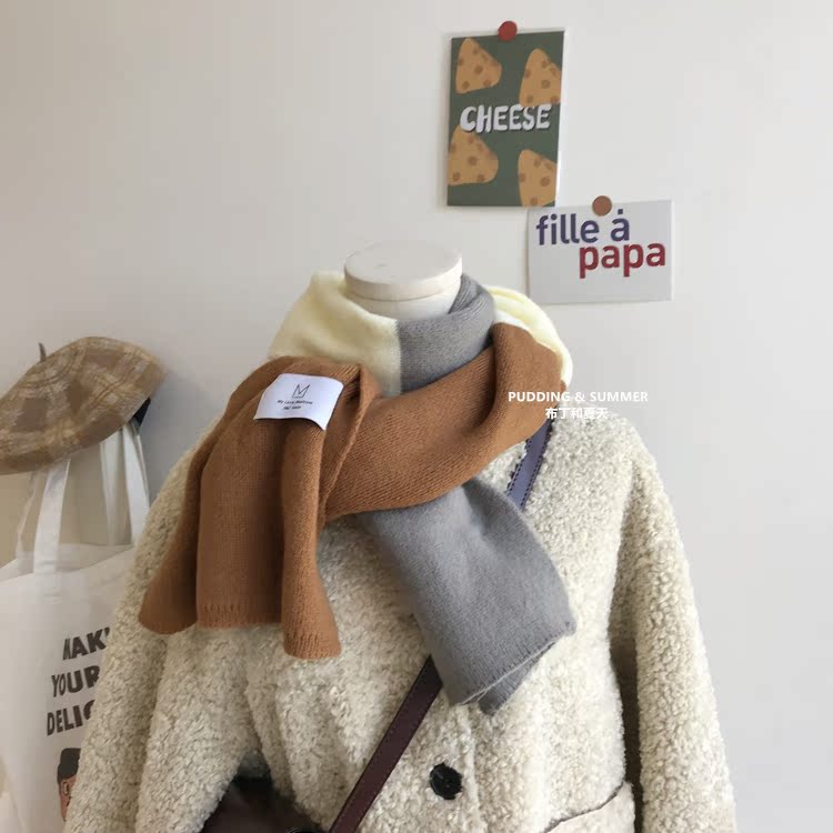 韓國東大門新款拼色撞色針織圍脖保暖復古圍巾學院風披肩閨蜜禮物1入