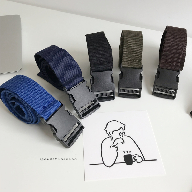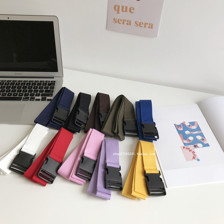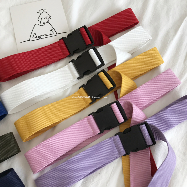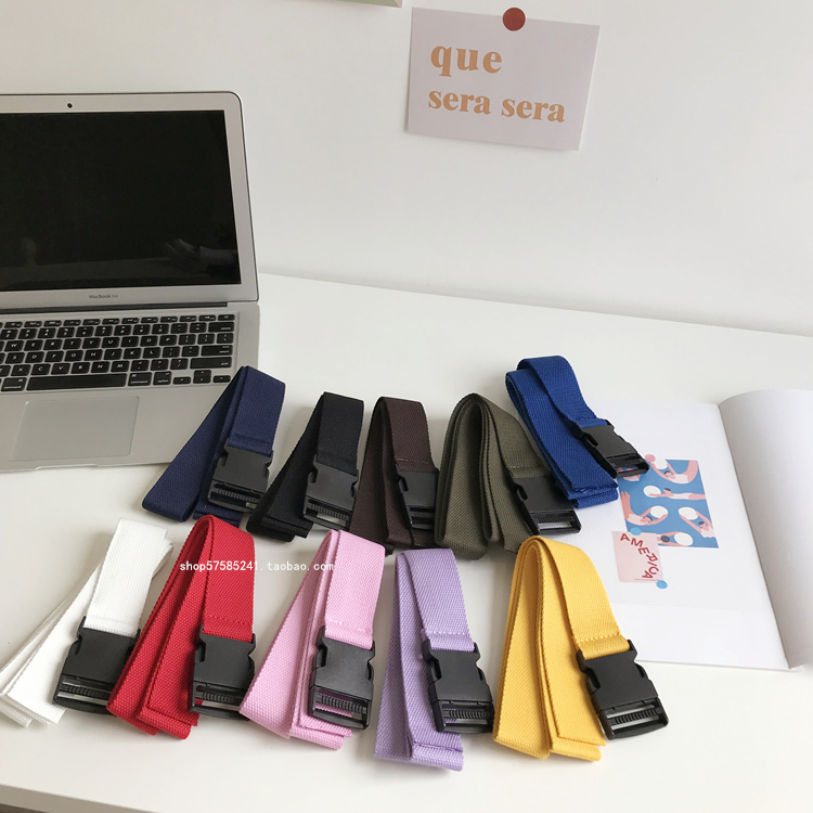 韓國新款軍訓bi入帆布腰帶彩色插扣學生情侶款男女皮帶可調節褲帶1入