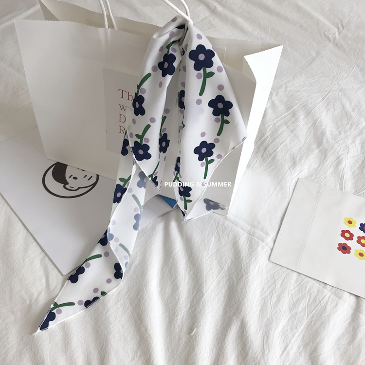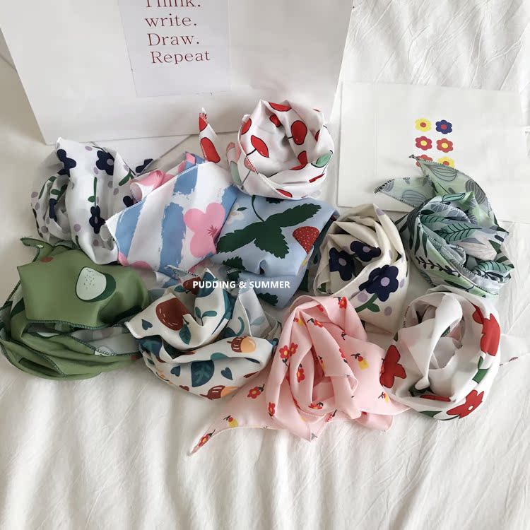 韓國ins博主新款裝飾頭巾絲巾領巾泫雅風花朵草莓牛油果三角巾女1入
