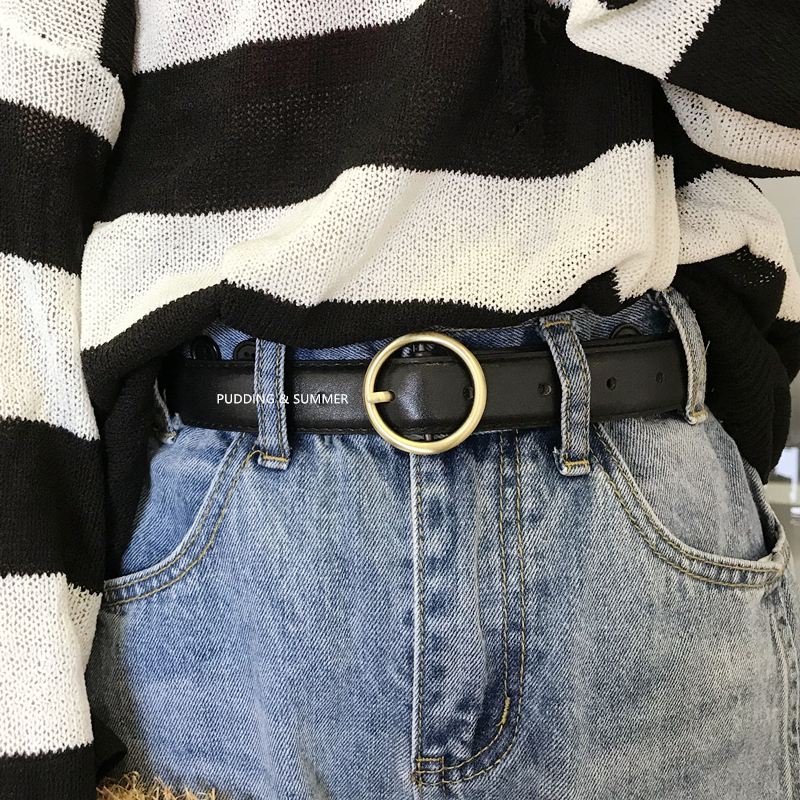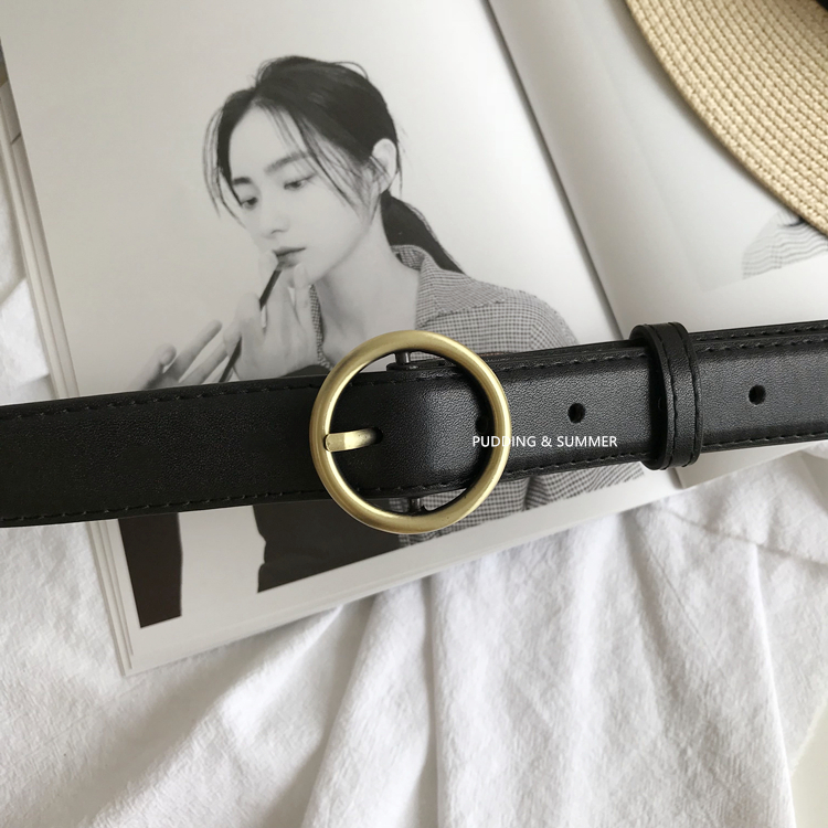 韓版復古學生腰帶軍訓皮帶圓扣流行耐看收腰褲帶復古金銅扣閨蜜女1入