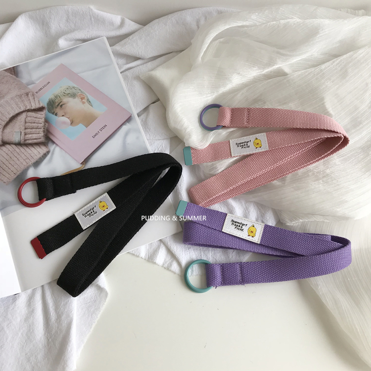韓國東大門新款原宿風腰帶帆布卡通抖音小黃鴨皮帶糖果色嘻哈褲帶1入