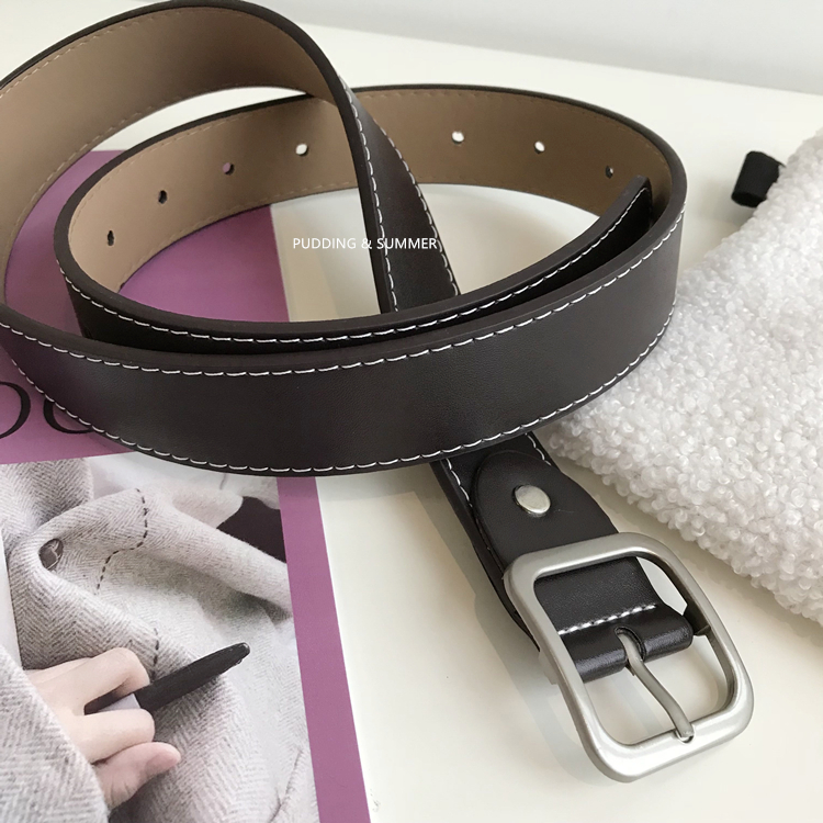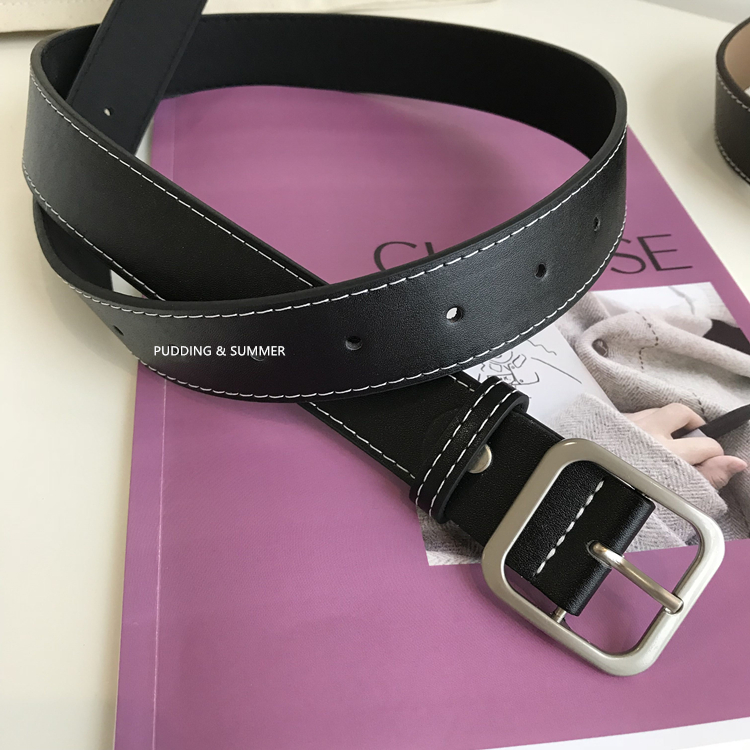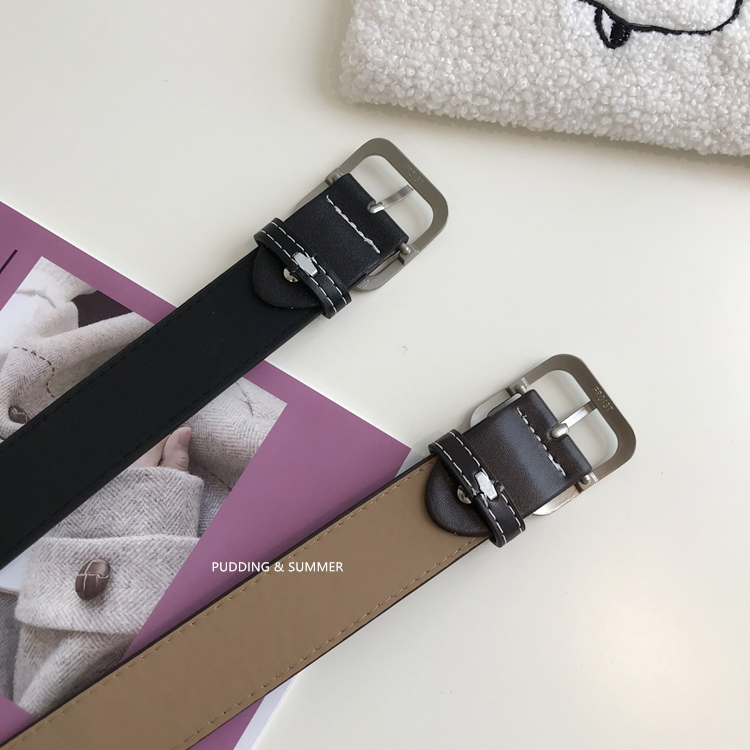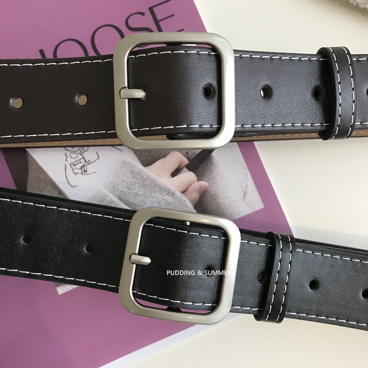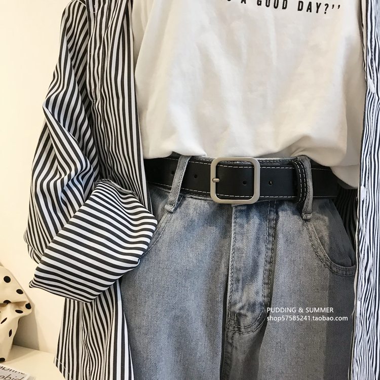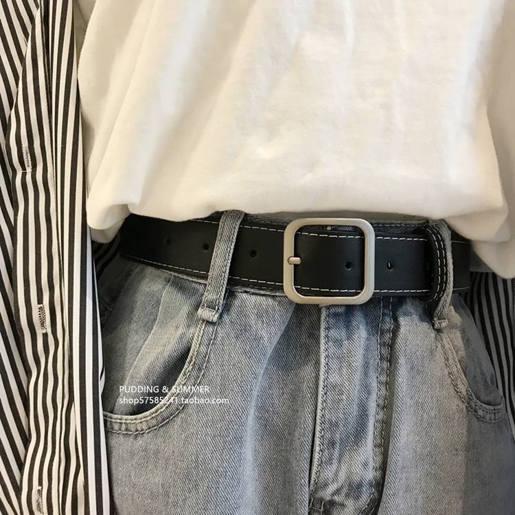2019年女士腰帶夏天新款BF風皮帶寬褲帶銀色扣寬帶身軟皮學生青年1入