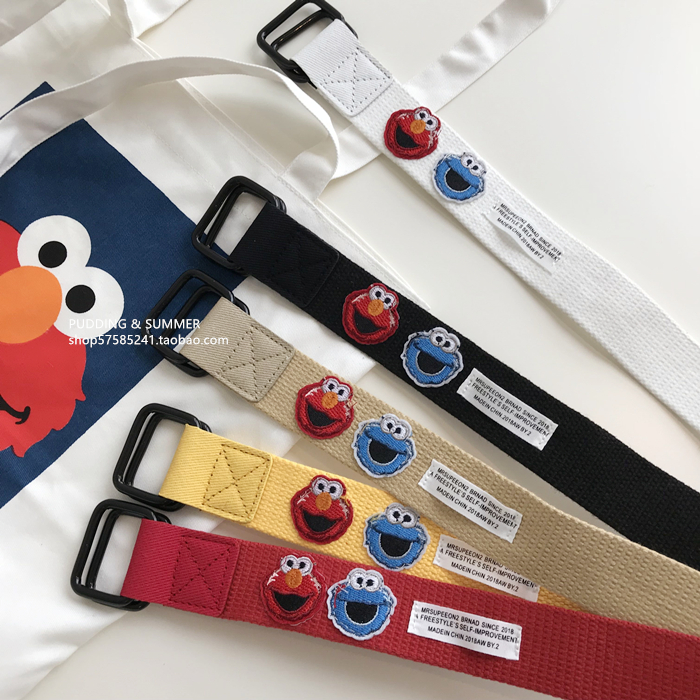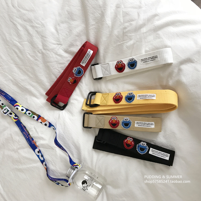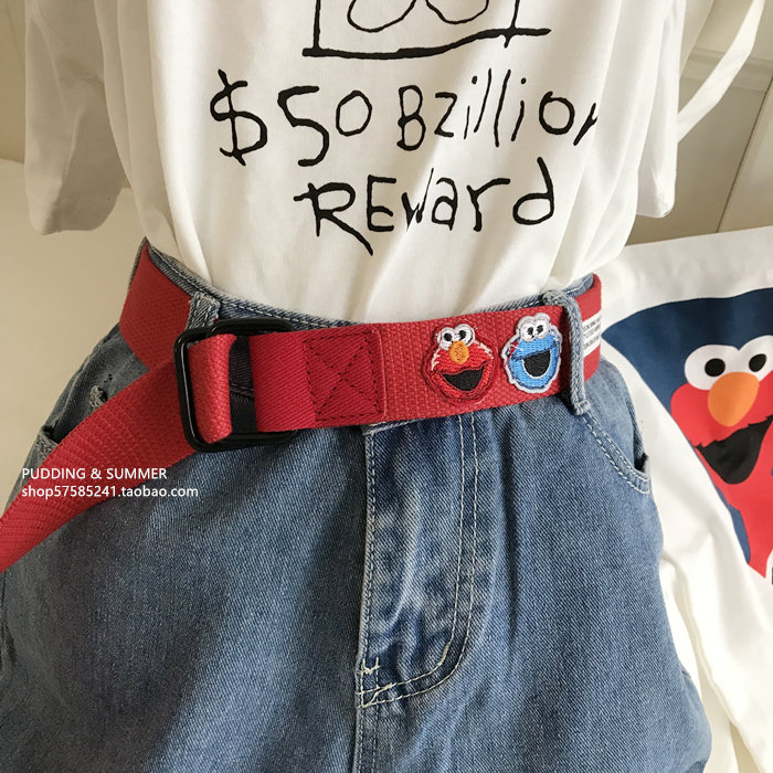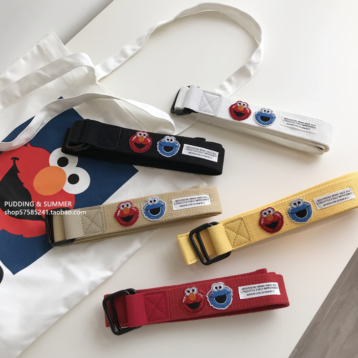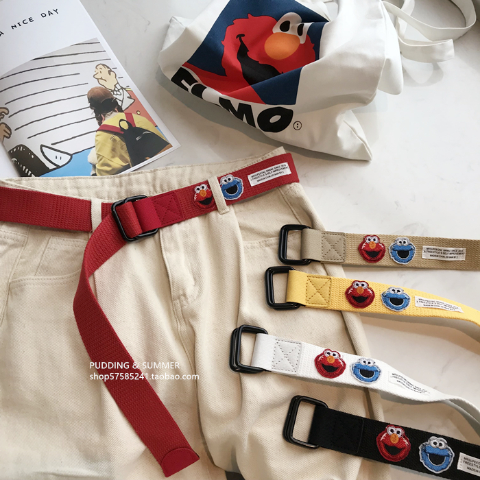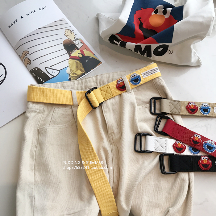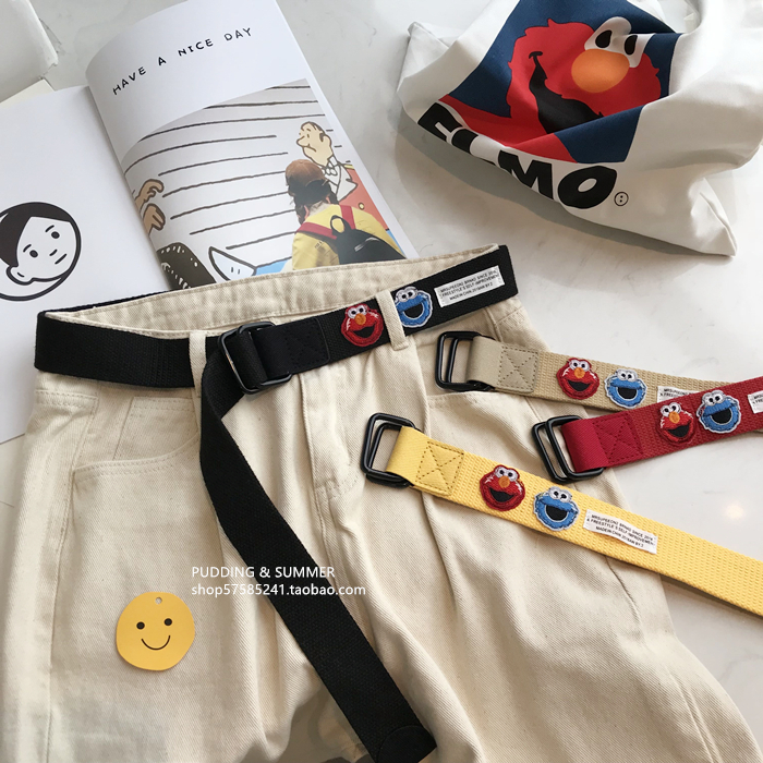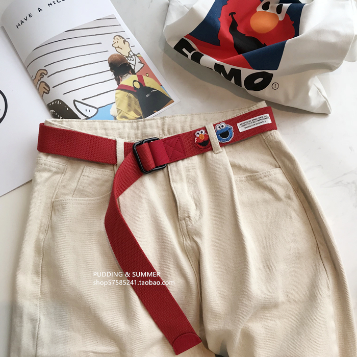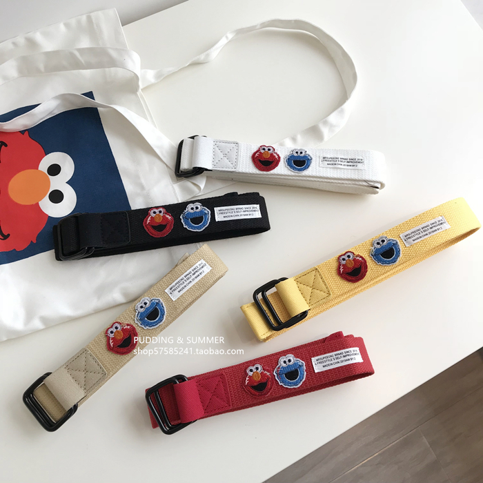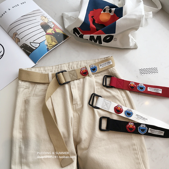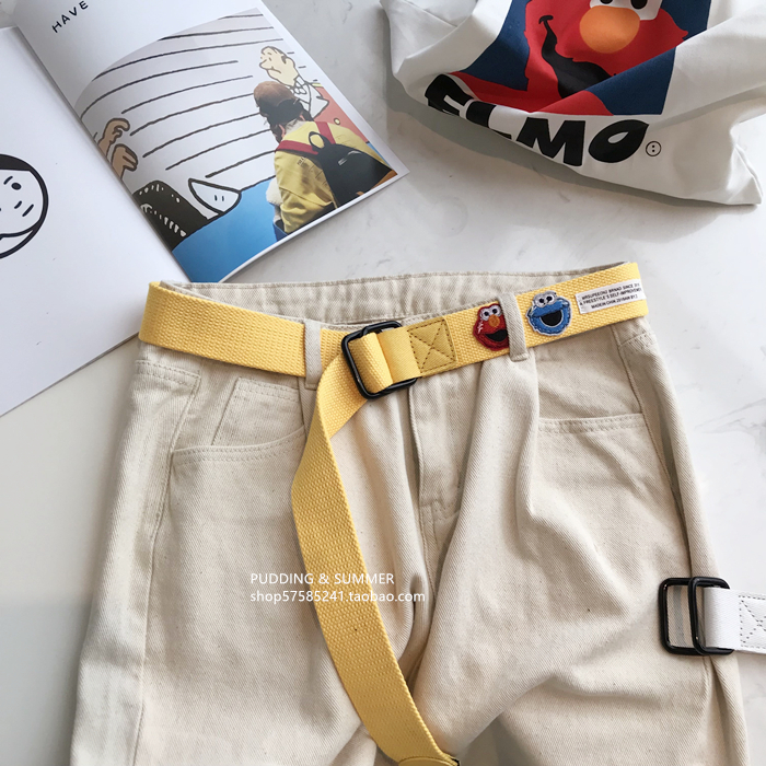 韓國ins風芝麻街卡通可愛原宿帆布腰帶學生牛仔褲休閑褲帶雙環扣1入