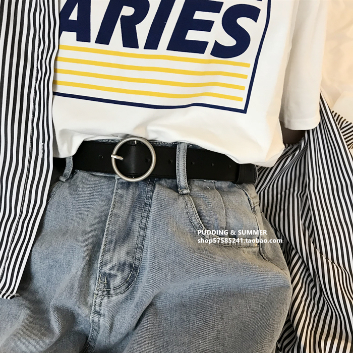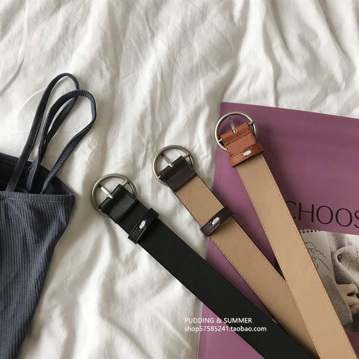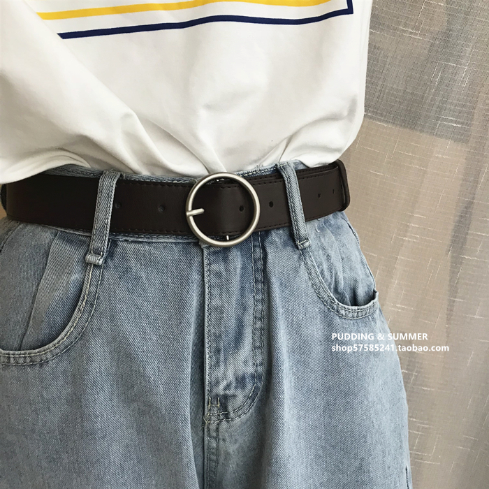 韓國新款韓范CHIC腰帶學生圓環圓扣皮帶復古銀色啞光扣頭INS風寬1入