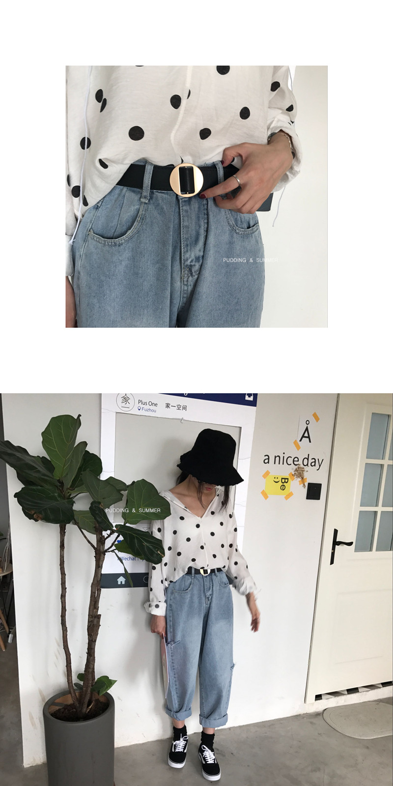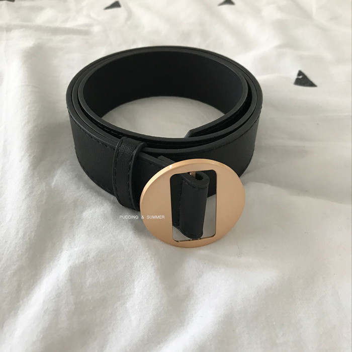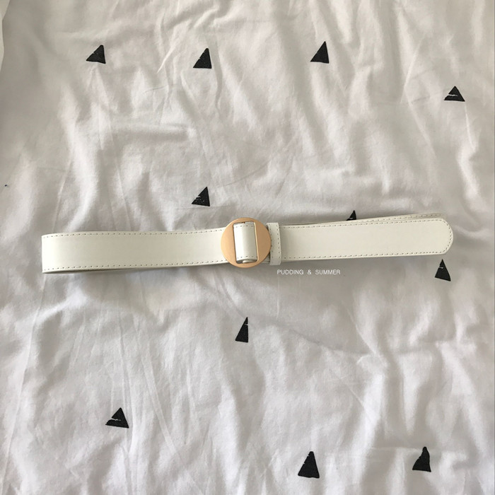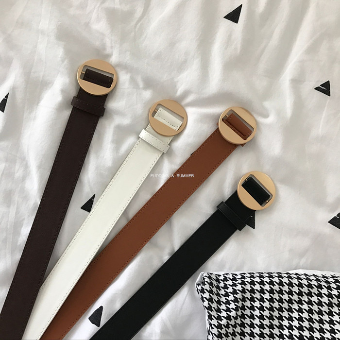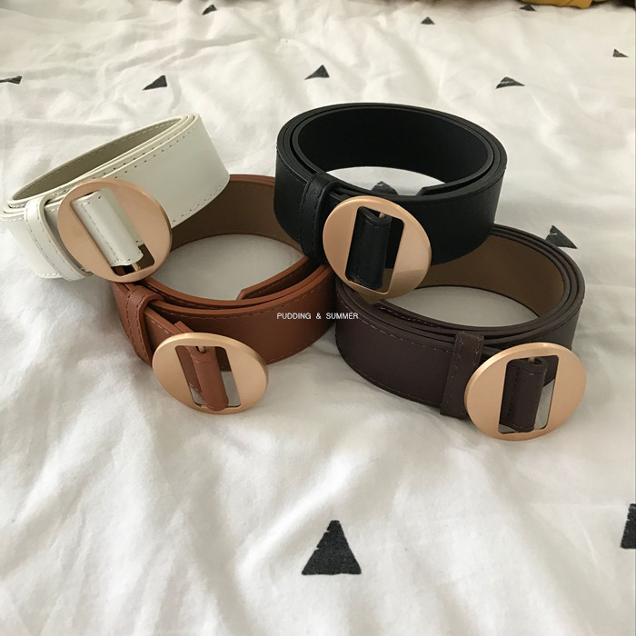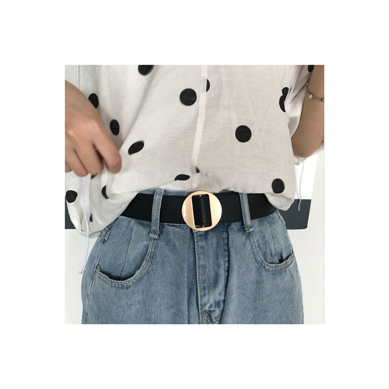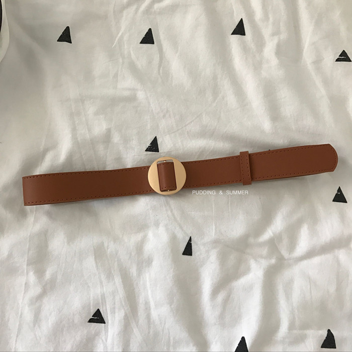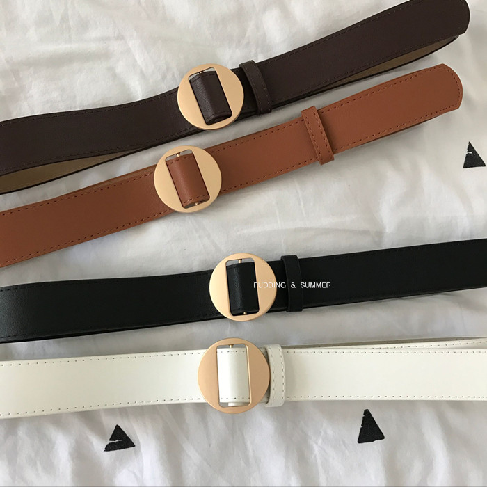 韓風新款韓版圓扣無孔腰帶簡約復古淺金色扣百搭女士PU皮帶寬流行1入