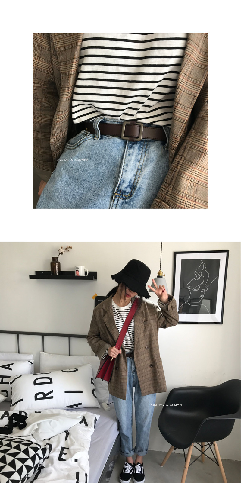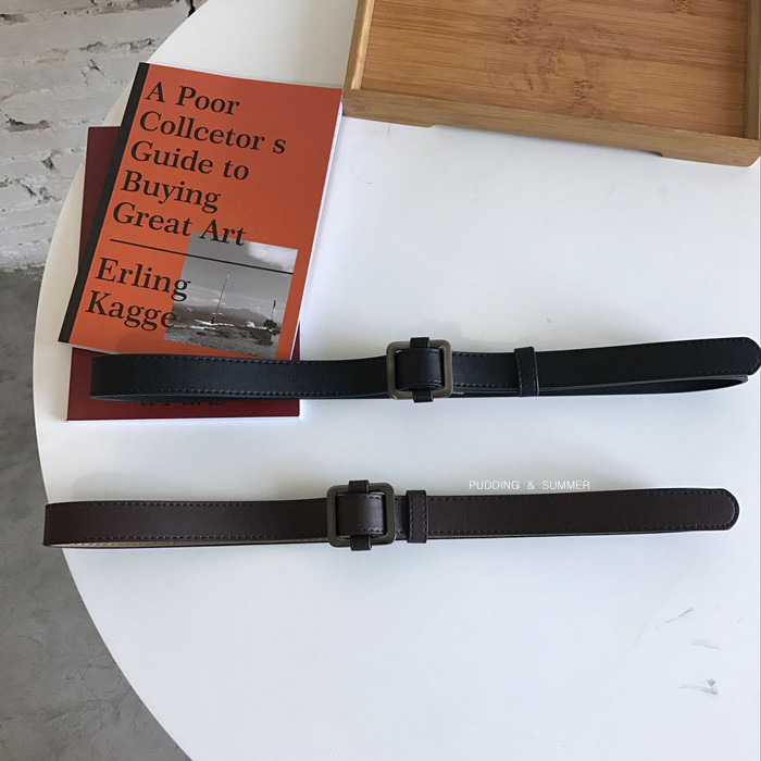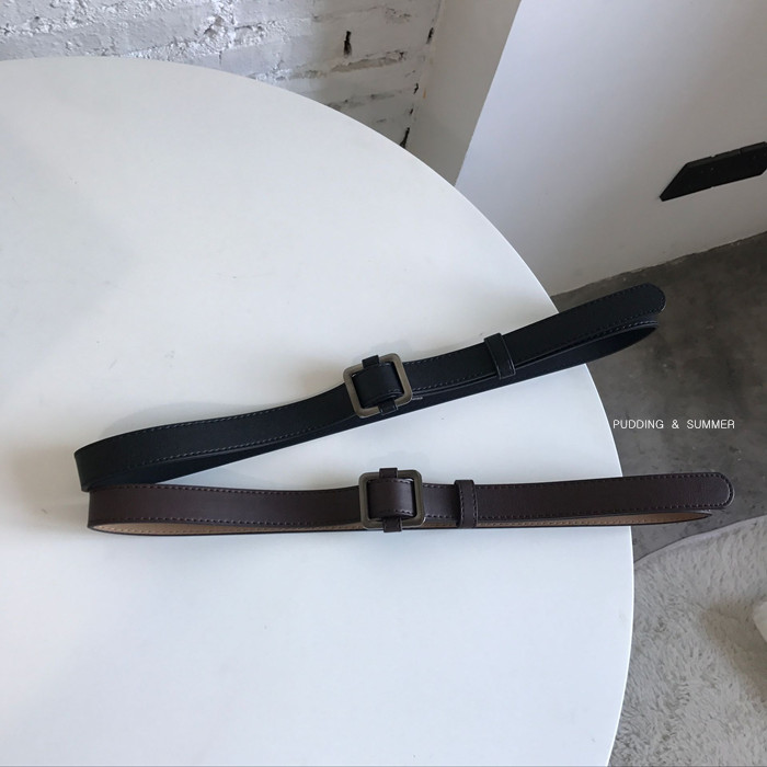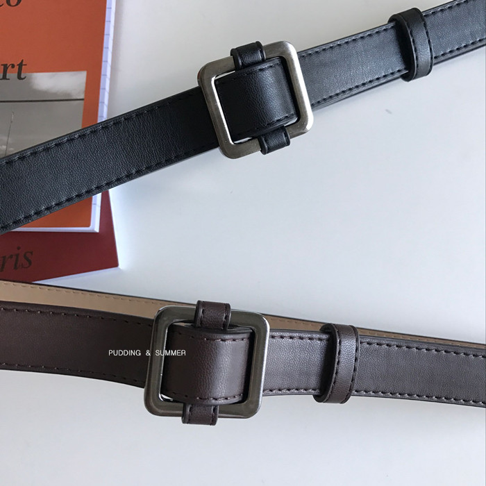 韓風chic腰帶無針孔百搭復古銀色正方形扣皮帶耐磨外套腰封褲帶女1入