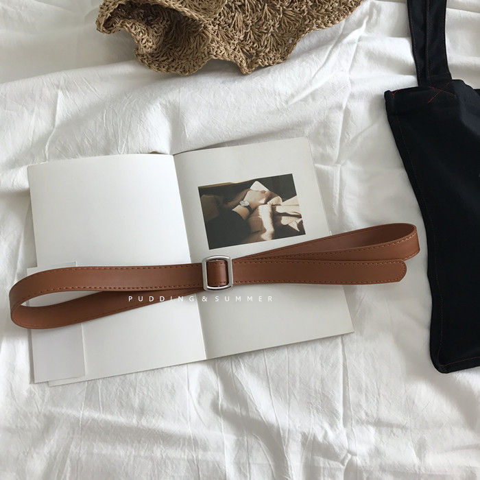 韓國新款柔軟的銀色方扣頭腰帶復古流行的無孔細皮帶牛仔褲帶女1入