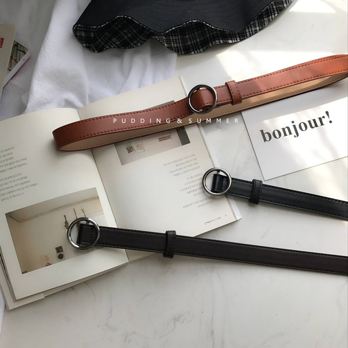 韓國2019新款流行無孔圓扣可調節皮帶女士黑軟腰帶學生牛仔褲帶潮1入