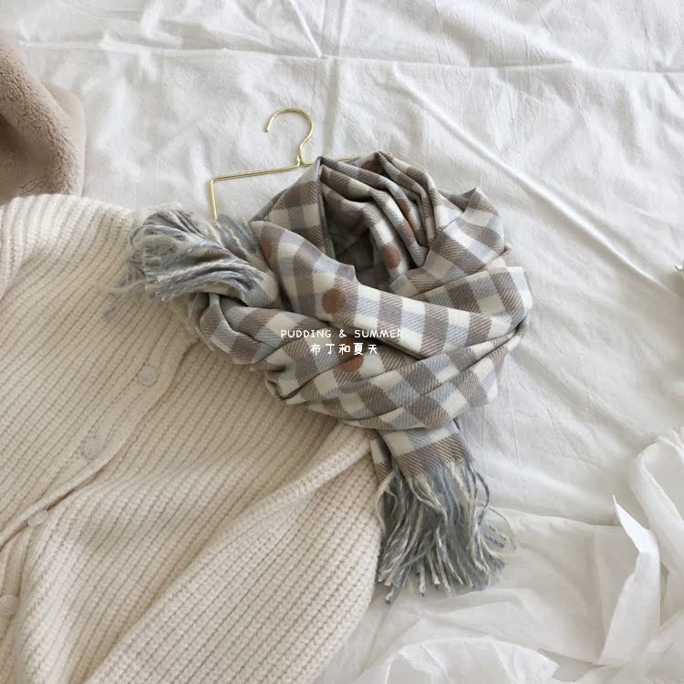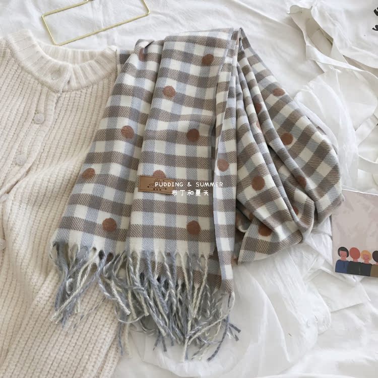韓國秋冬新款圍巾清新文藝波點披肩柔軟格子圍脖長款披肩生日禮物1入