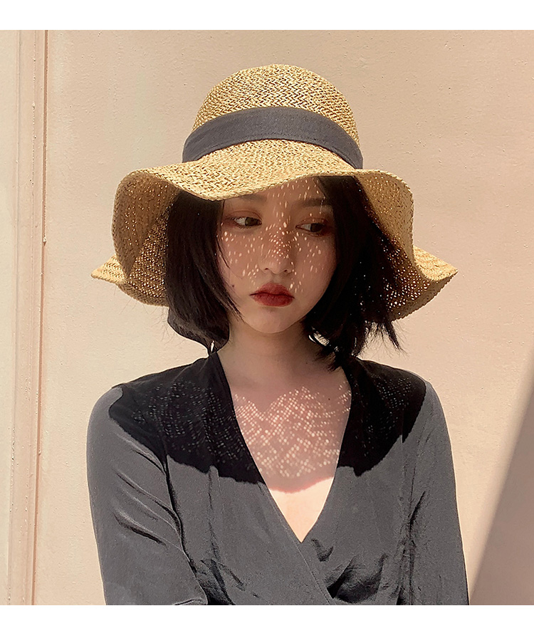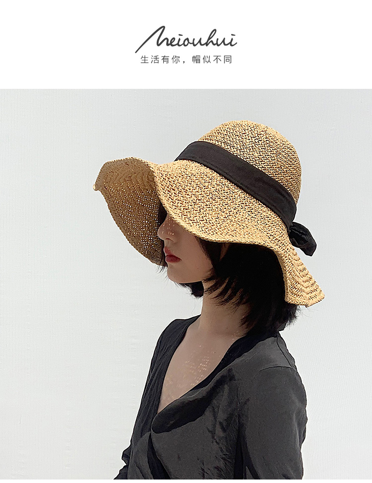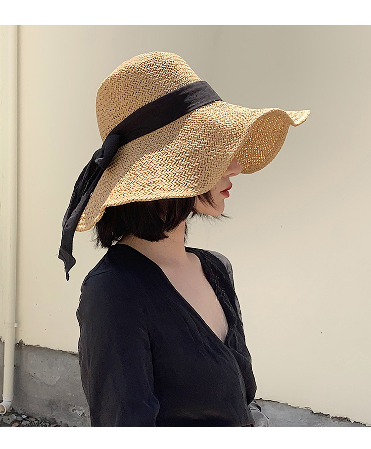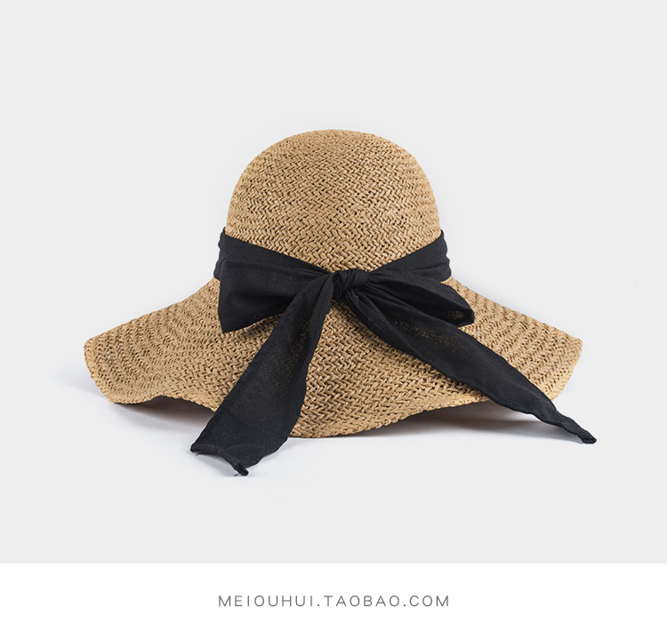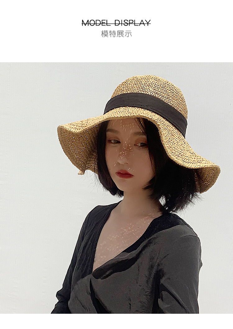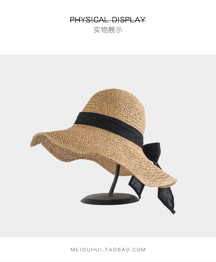 遮陽草帽帽子女夏防曬遮臉出游百搭沙灘海邊大沿夏天韓版潮太陽帽1入