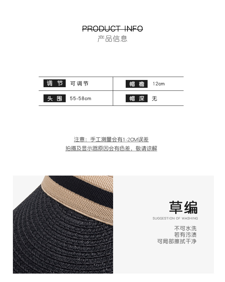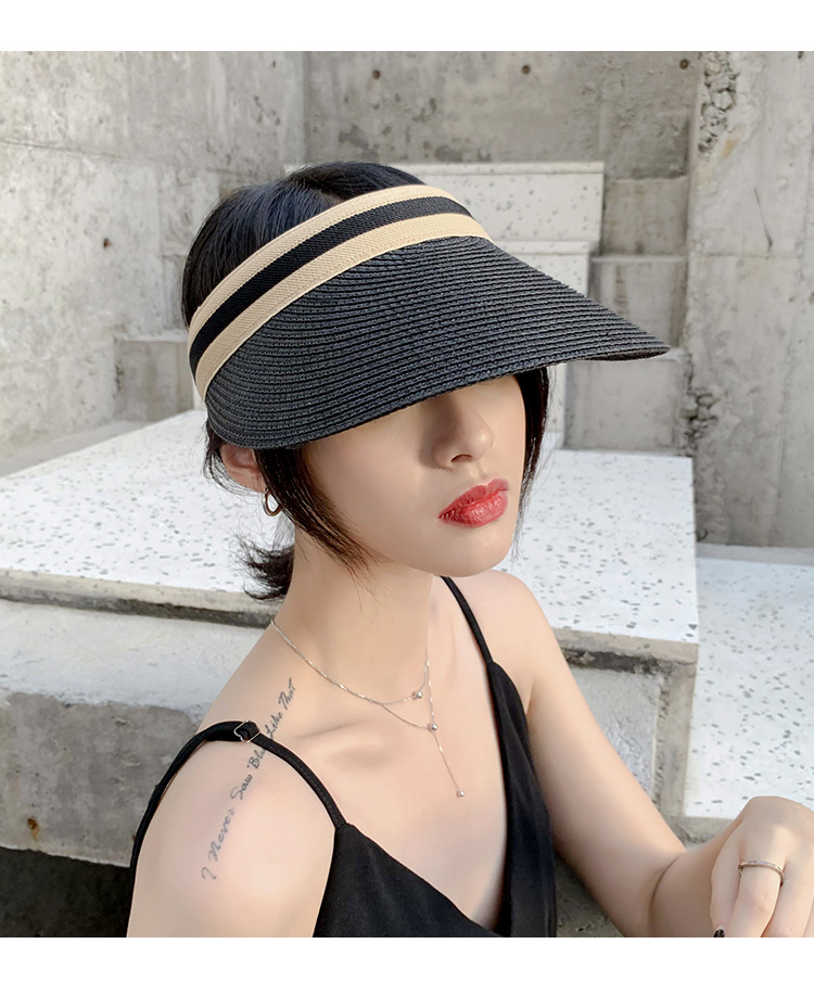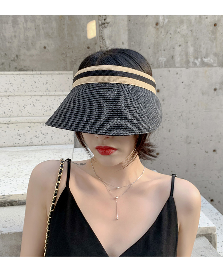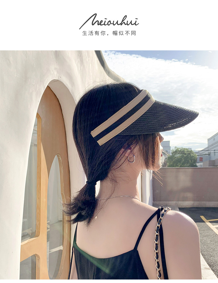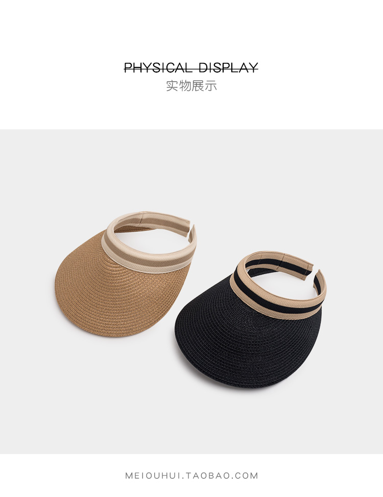 遮臉空頂帽子女夏網紅ins同款草帽沙灘度假防曬韓版潮無頂太陽帽1入