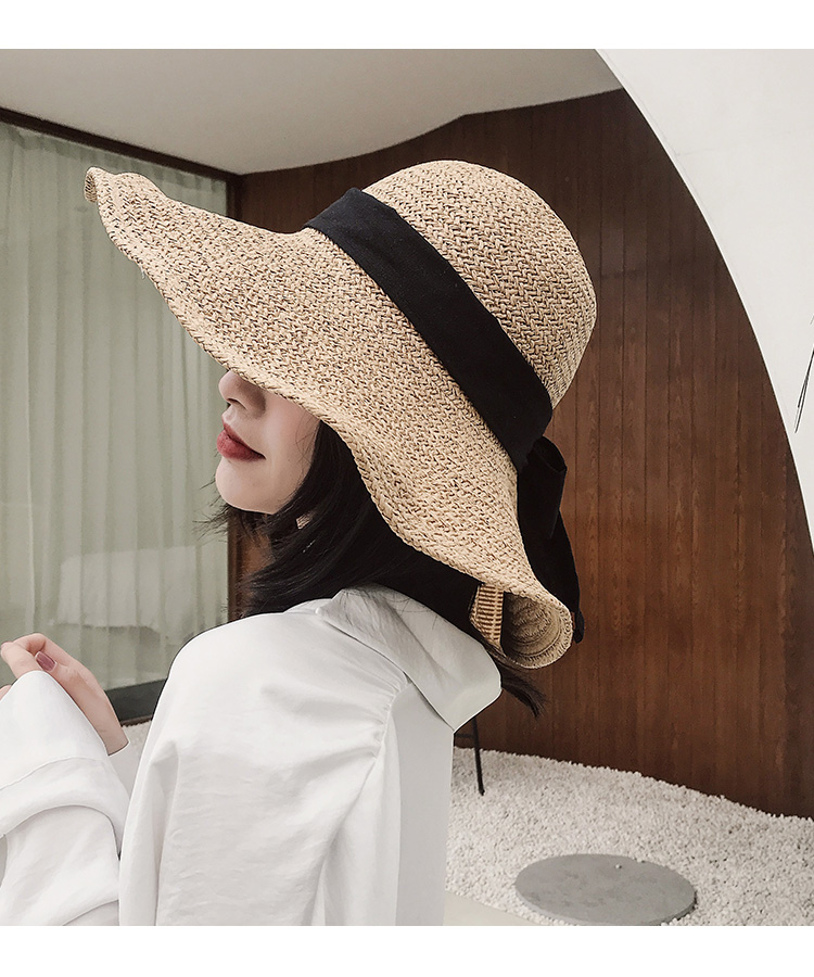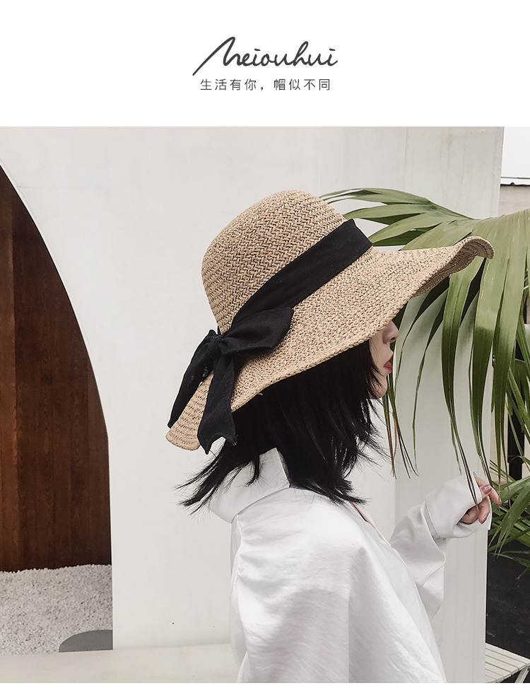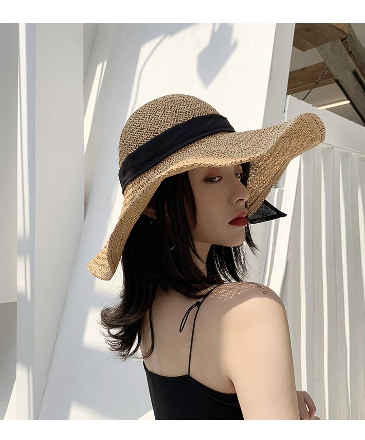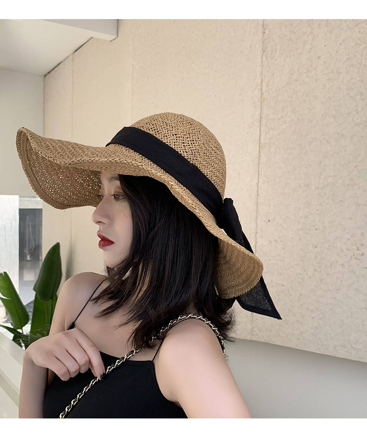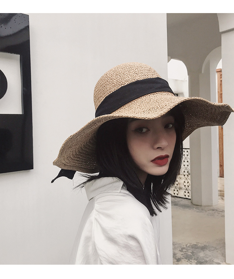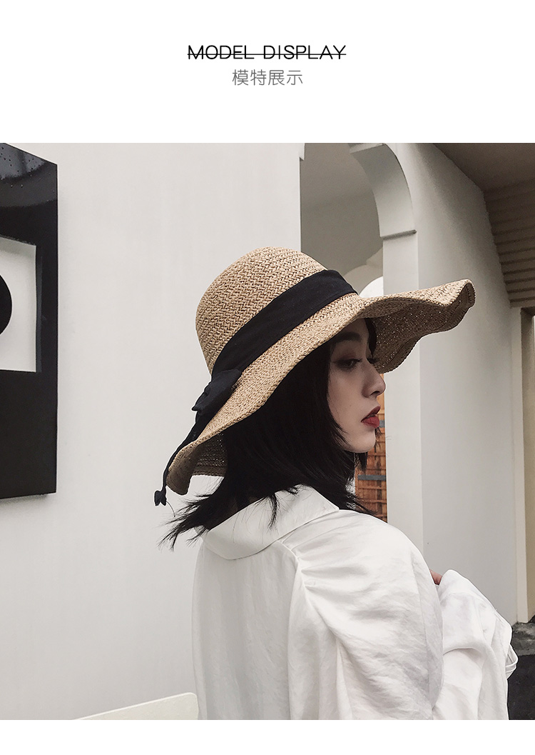 遮陽草帽子女夏防曬網紅款大帽檐韓版潮海邊度假百搭夏天沙灘涼帽1入
