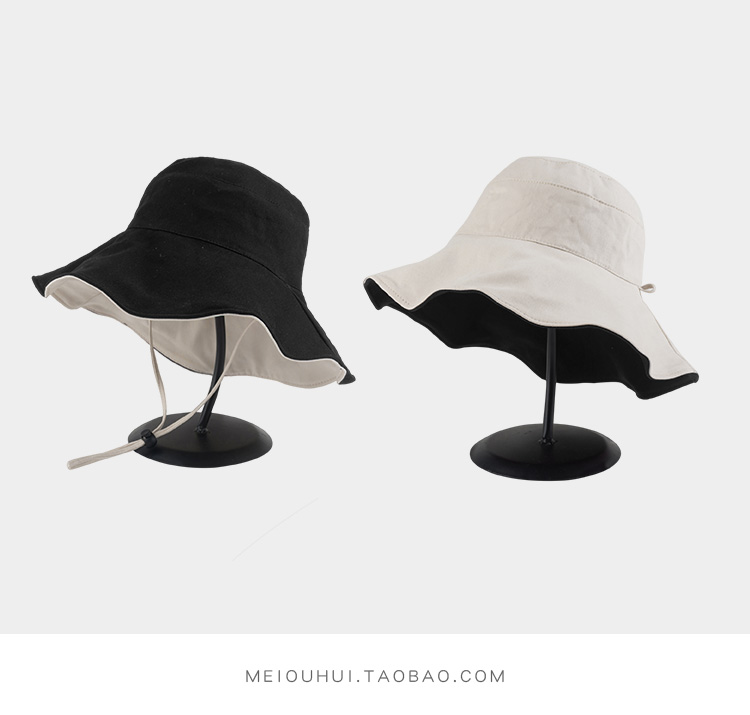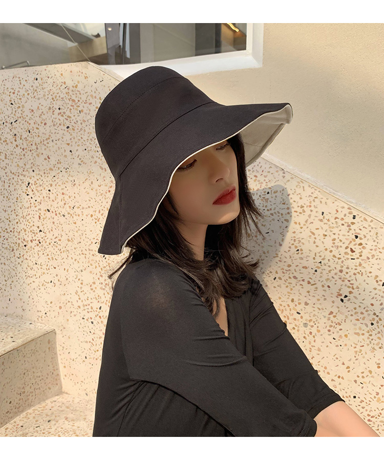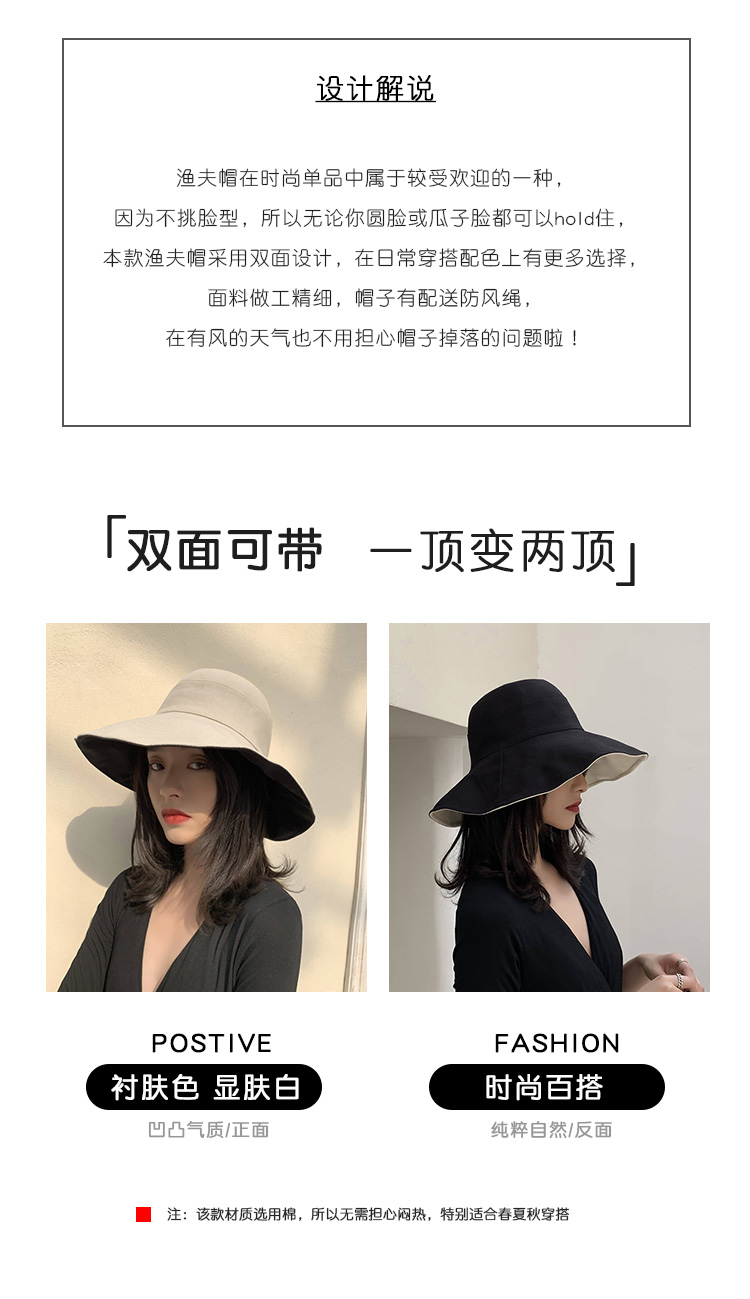雙面戴日系漁夫帽子女韓版潮春秋百搭逛街網紅款寬檐遮陽防曬帽夏1入