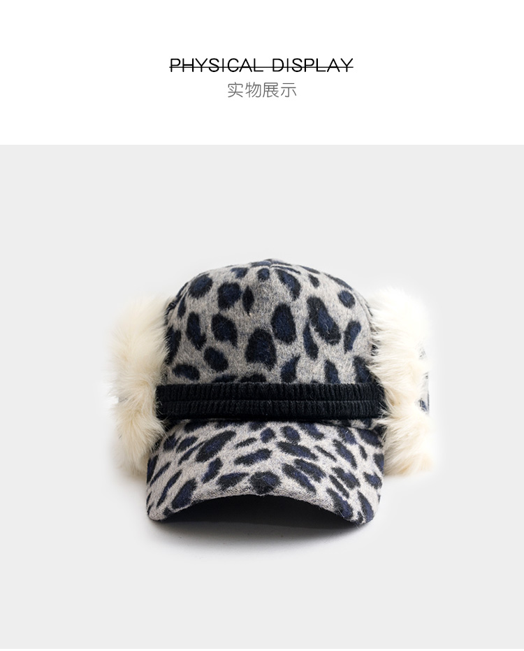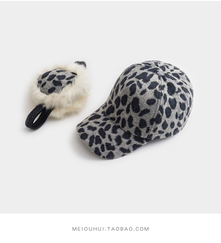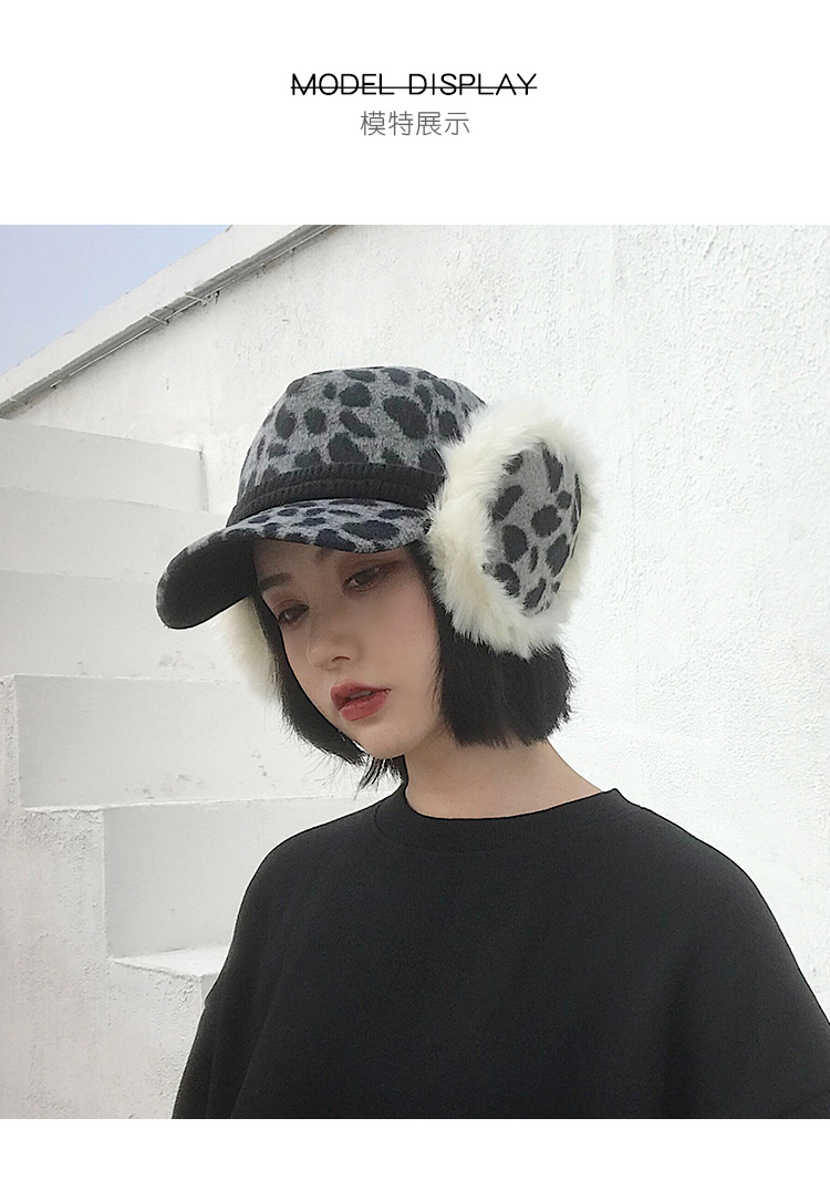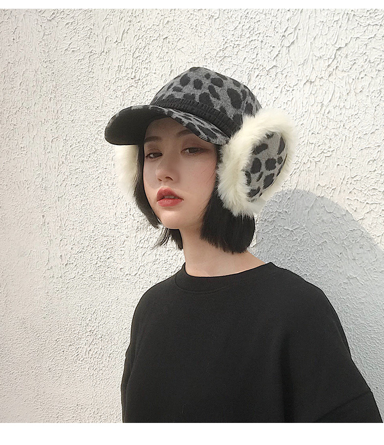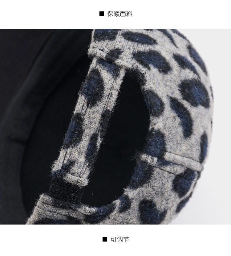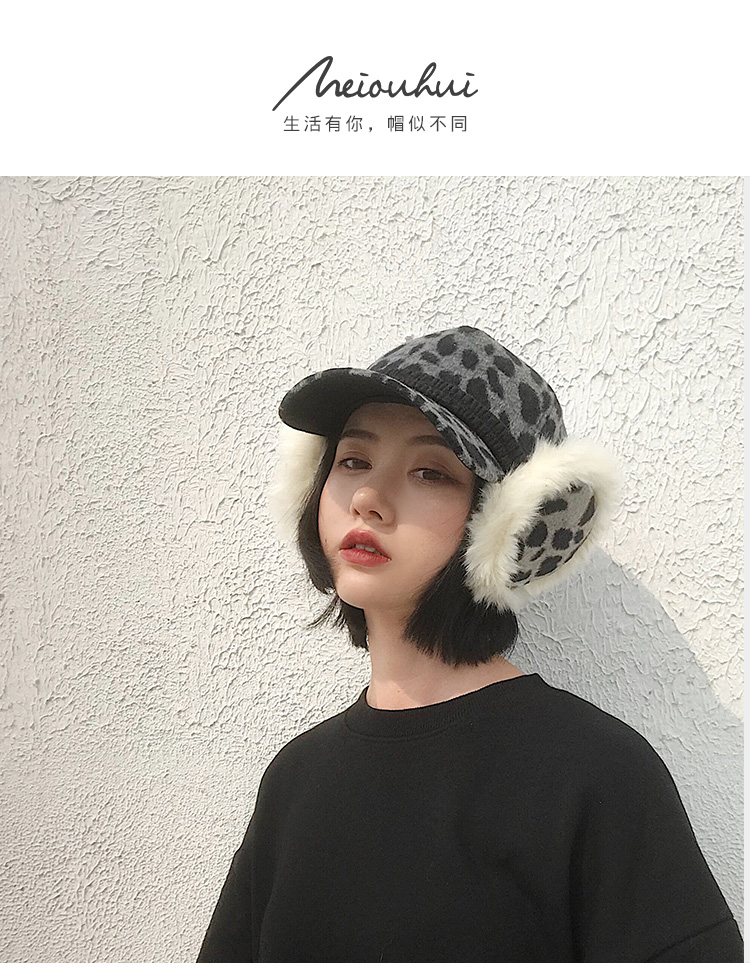 護耳鴨舌帽子女韓版百搭豹紋日系秋冬保暖時尚冬天毛線針織棒球帽1入