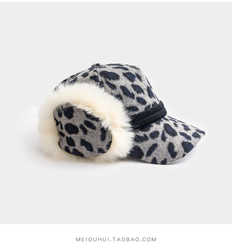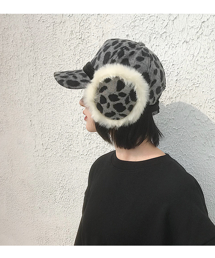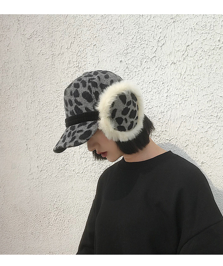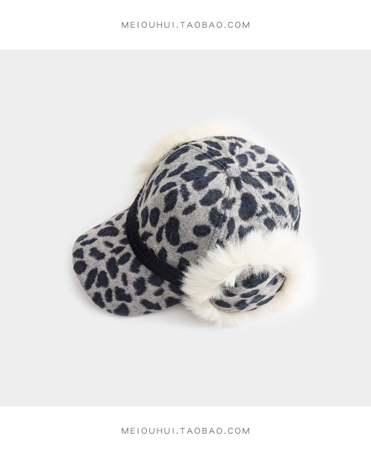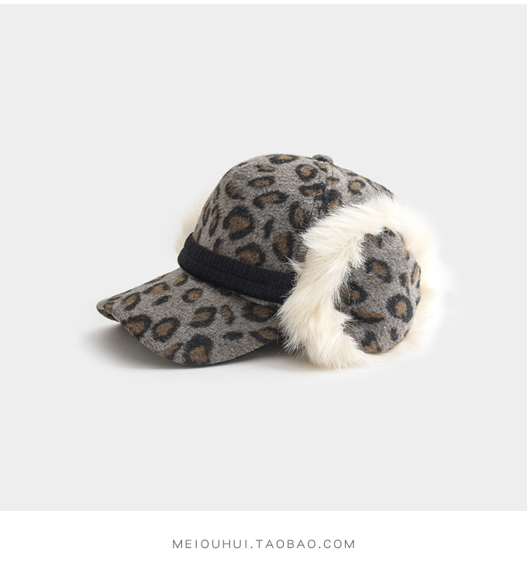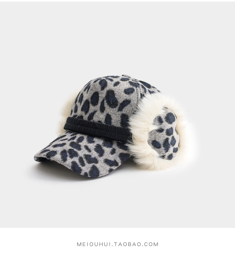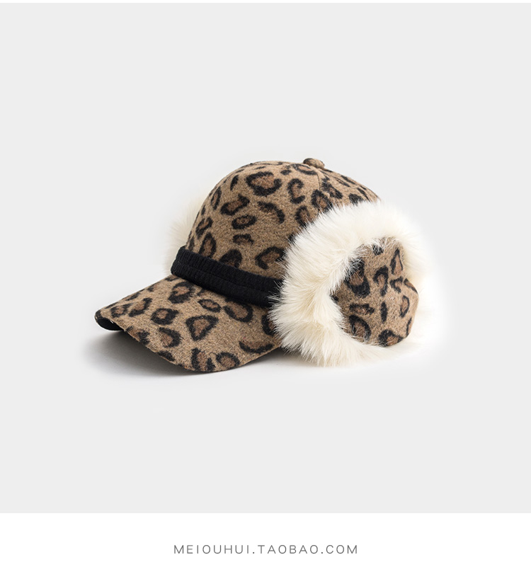 護耳鴨舌帽子女韓版百搭豹紋日系秋冬保暖時尚冬天毛線針織棒球帽1入