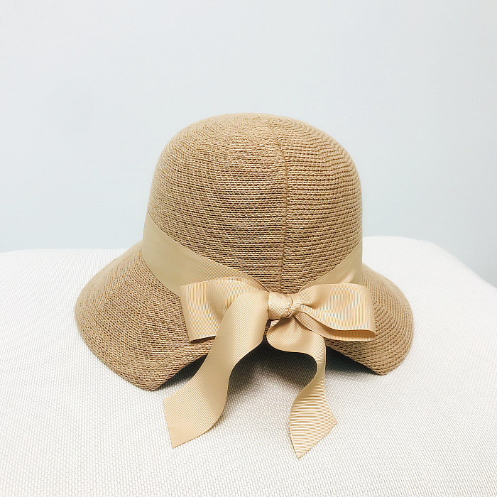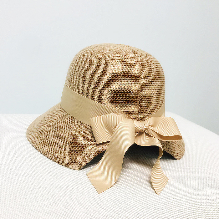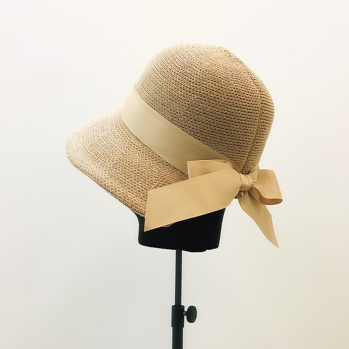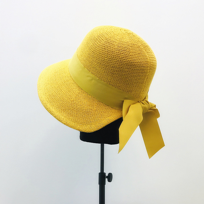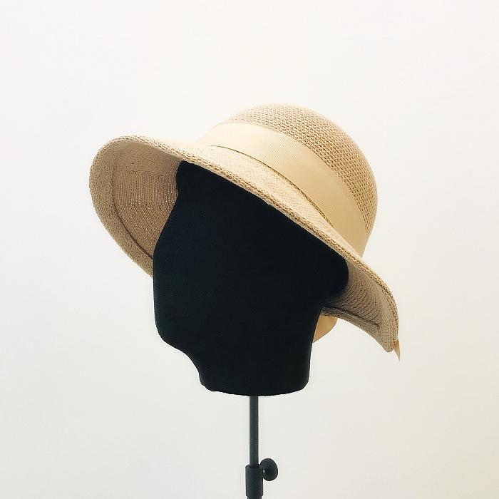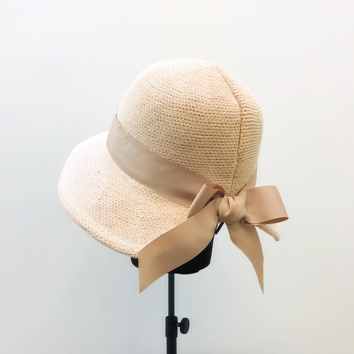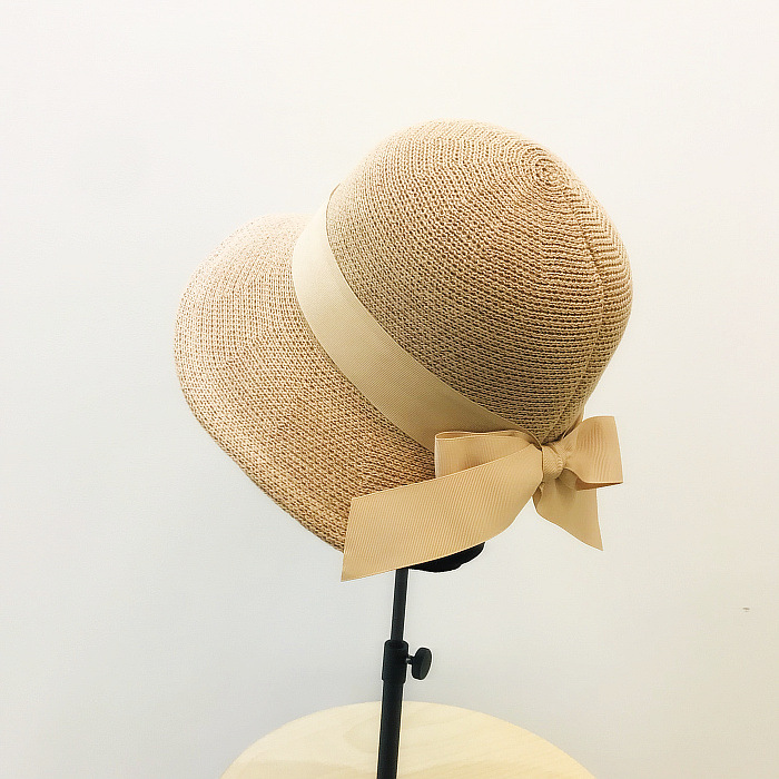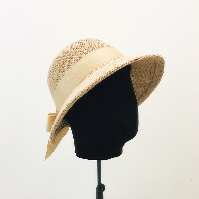 韓版優雅棉紗后開叉小盆帽女夏天飄帶漁夫帽防曬沙灘帽子馬尾可戴1入