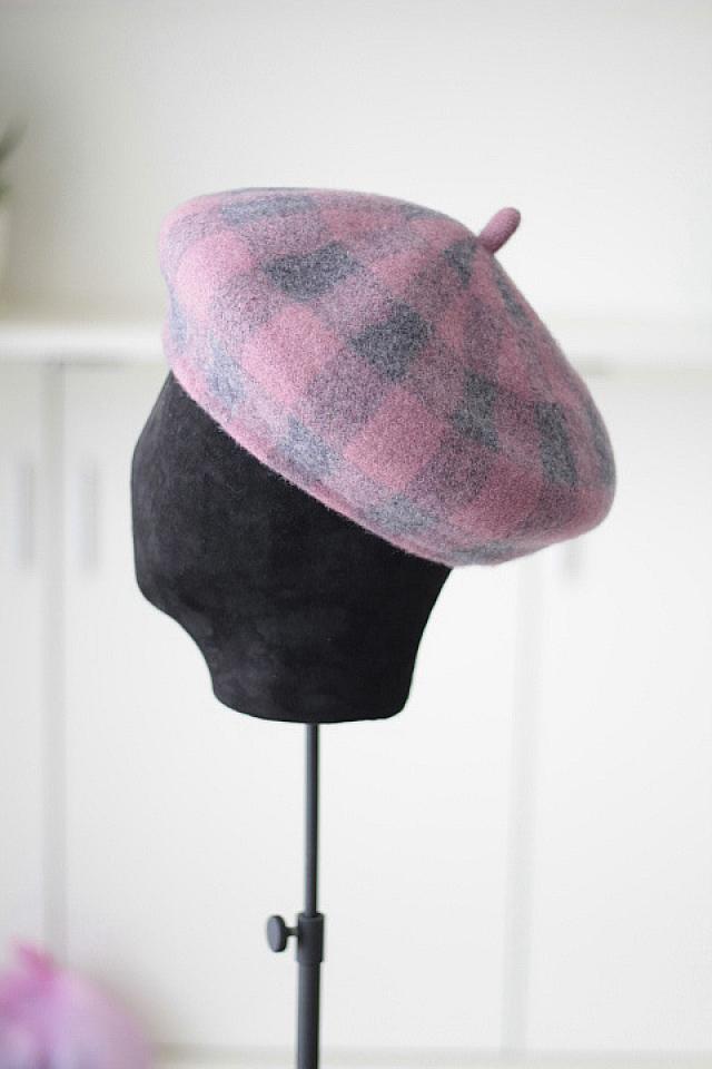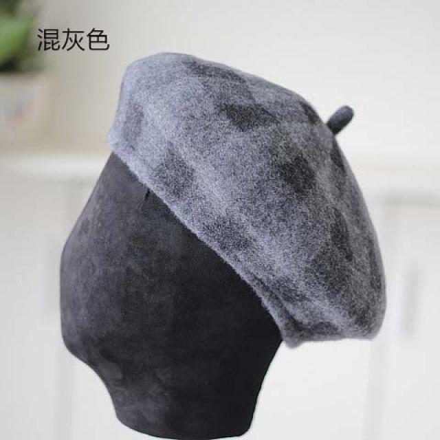 韓國羊毛呢加厚秋冬保暖造型格子貝雷帽女士羊毛針織文藝百搭帽子1入