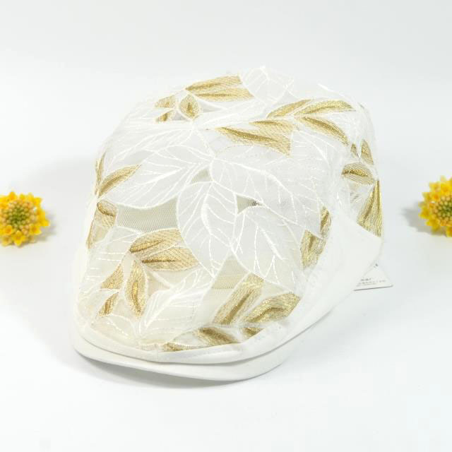 貝雷帽 女士 夏季時尚樹葉亮線韓版潮網眼透氣女遮陽優雅鴨舌帽子1入