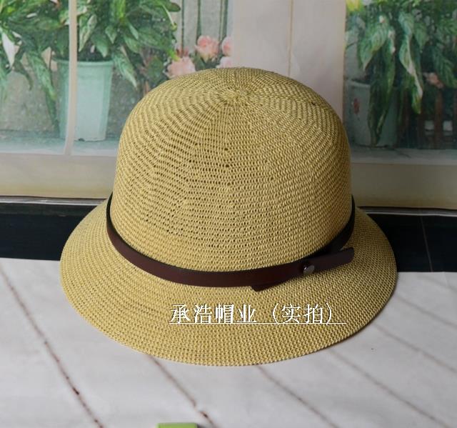 韓國復古圓頂棉麻禮帽漁夫帽子女士夏天皮帶透氣短沿小盆帽遮陽帽1入