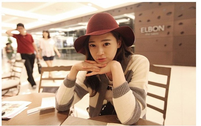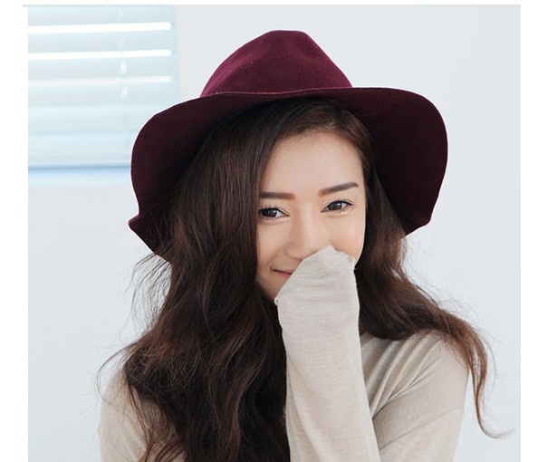 韓國歐美風百搭大寬沿羊毛呢帽子圓頂氈帽爵士禮帽女秋冬天潮盆帽1入