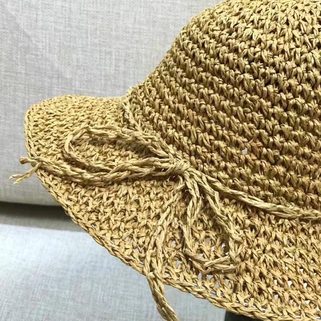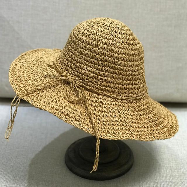 親子草帽母女夏天大檐遮陽帽沙灘帽防曬可折疊度假帽兒童寶寶帽子1入