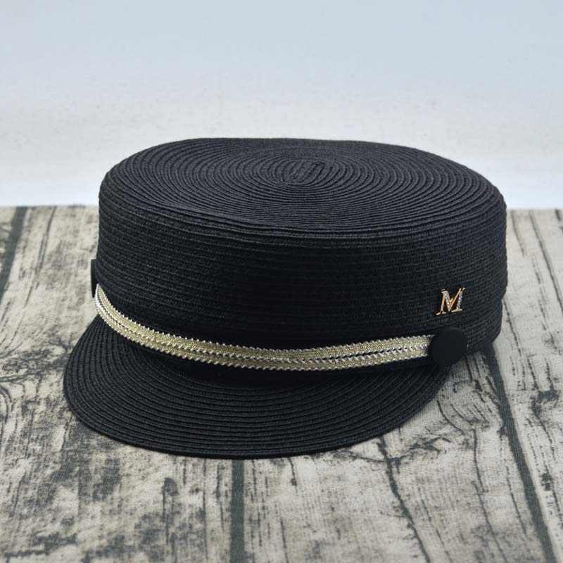 2018時尚新款日本設計水鉆字母平頂帽棉紗鴨舌帽子女夏天遮陽草帽1入