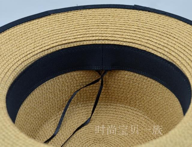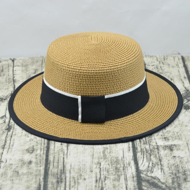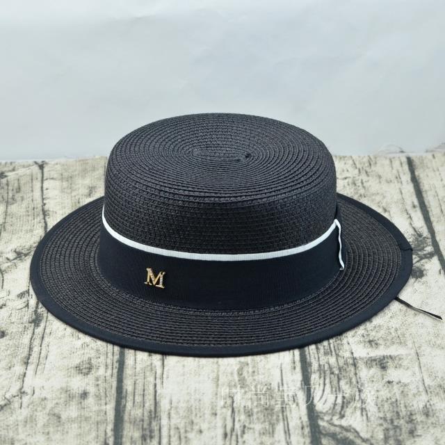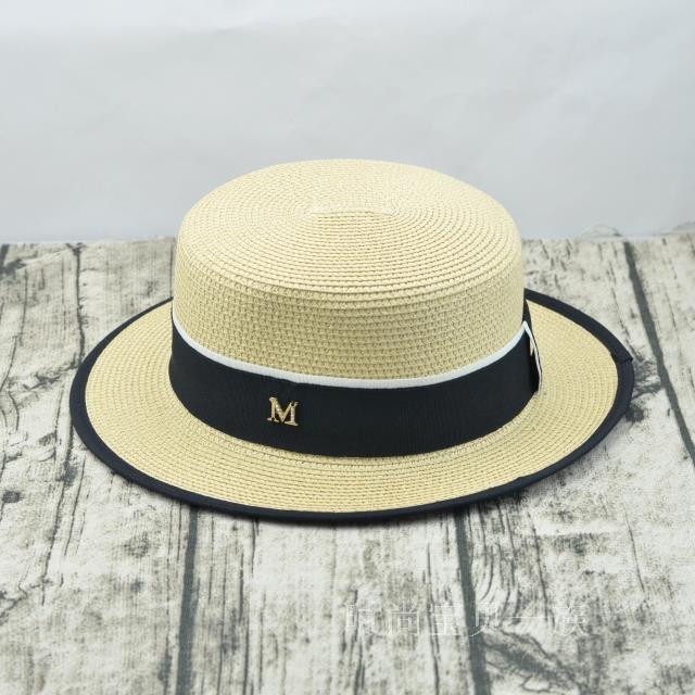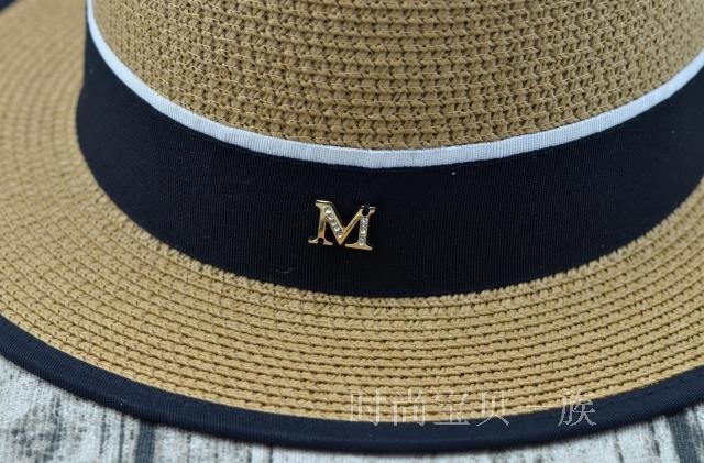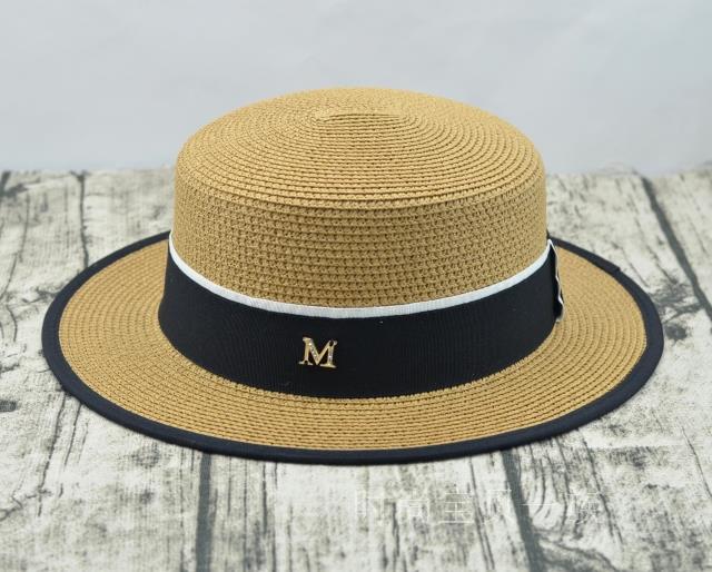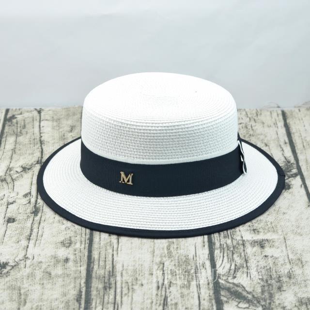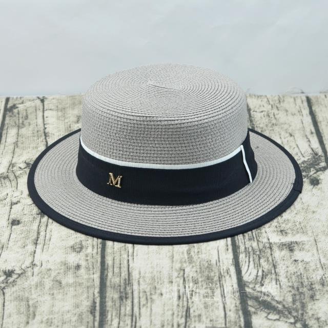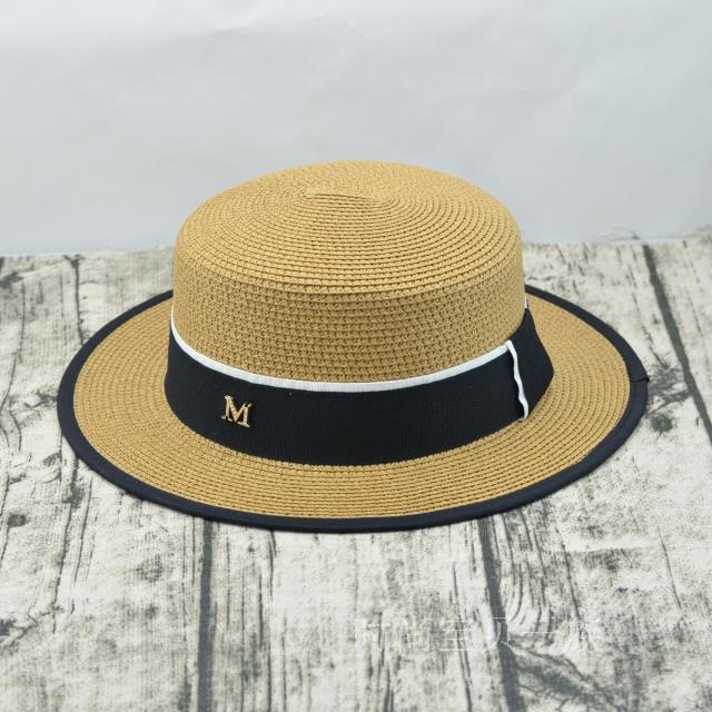 輕奢風水鉆M字母平頂遮陽草帽百搭休閑聚會優雅禮帽子女 夏季草帽1入