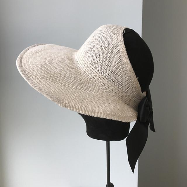 韓國版空頂帽蝴蝶結女士海邊沙灘度假棉紗防曬無頂漁夫草帽子女夏1入