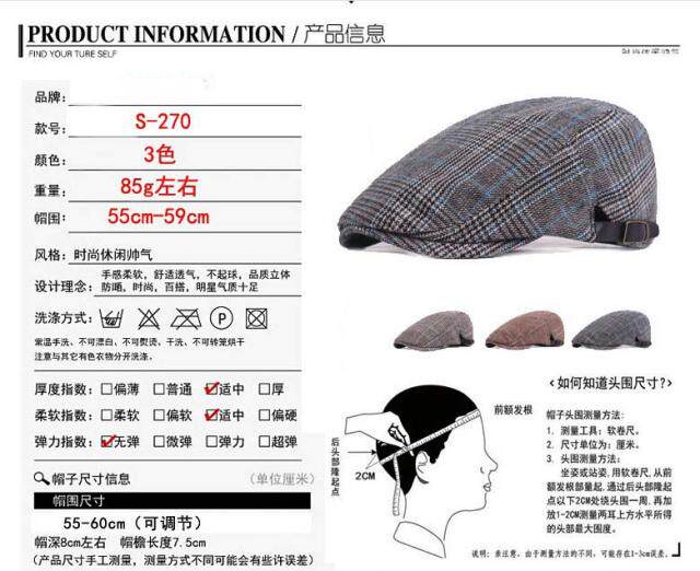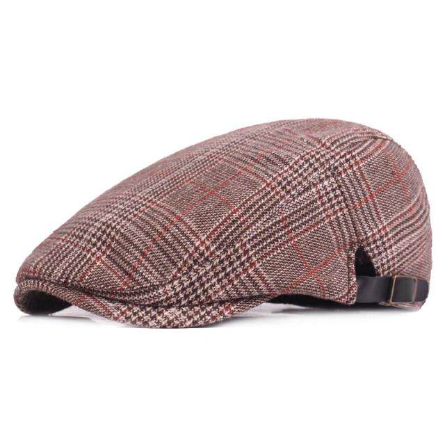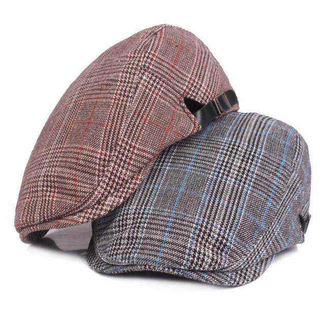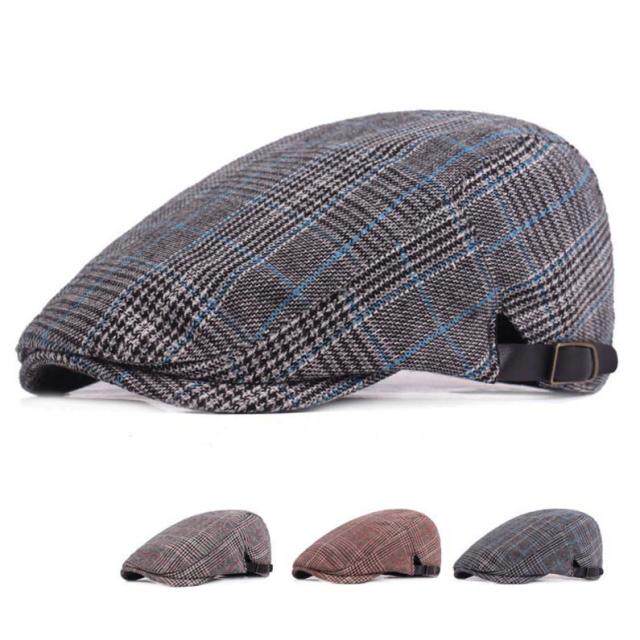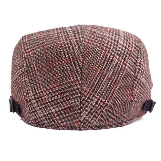 春夏天格紋英倫復古休閑帥氣鴨舌帽子貝雷帽男女士百搭前進帽1入