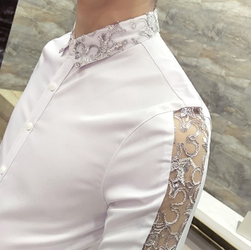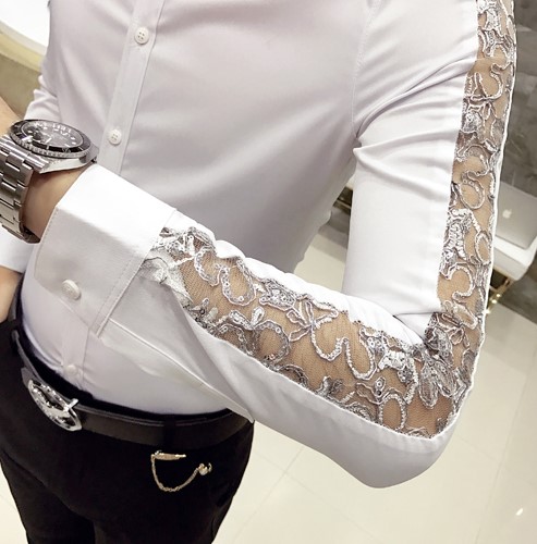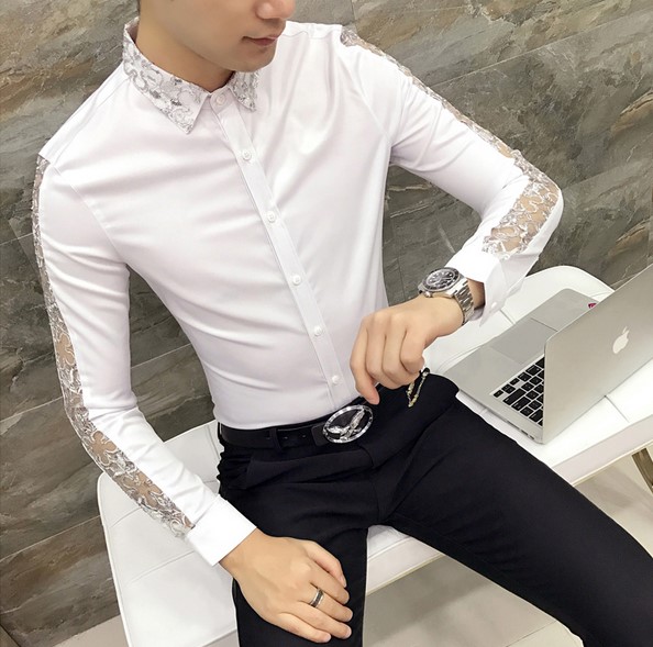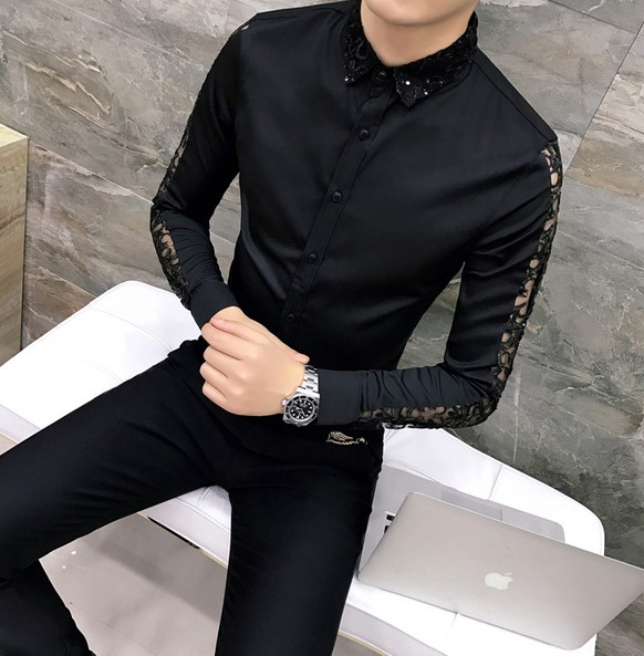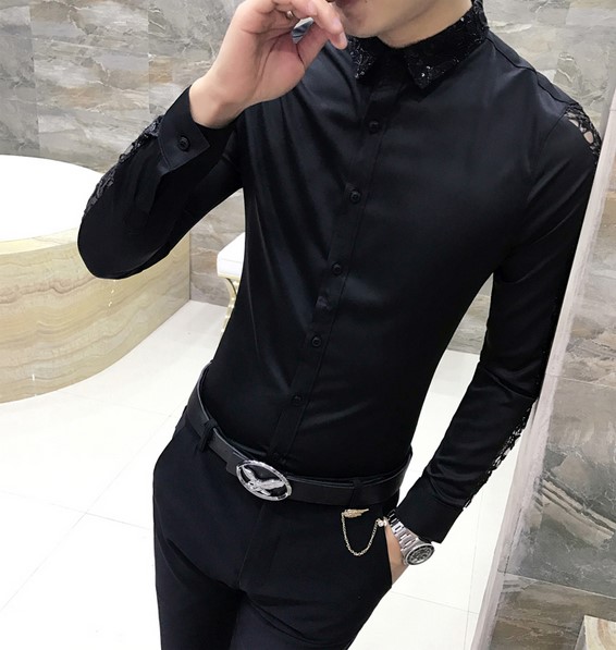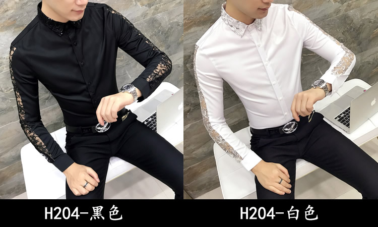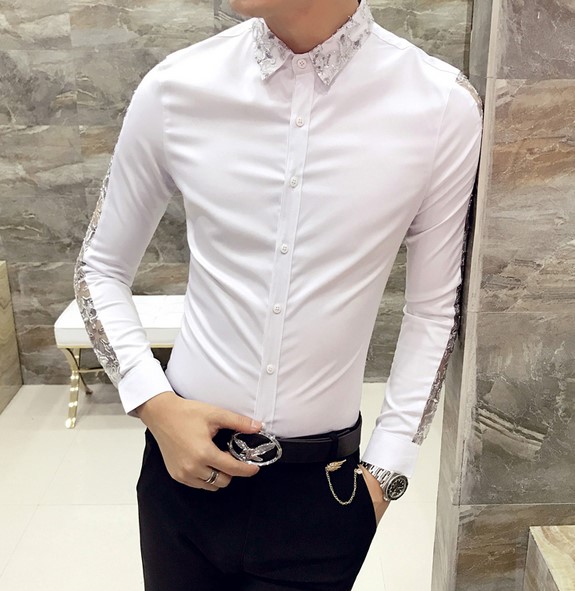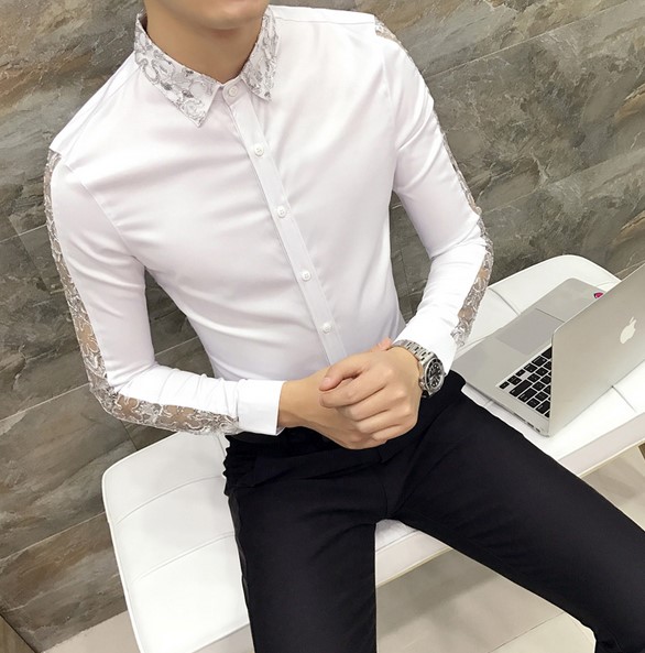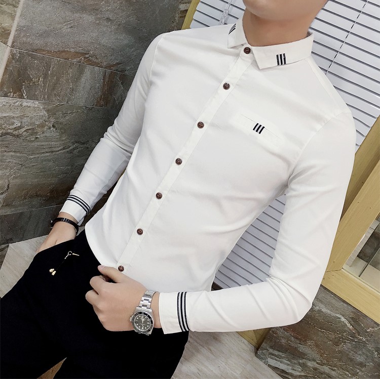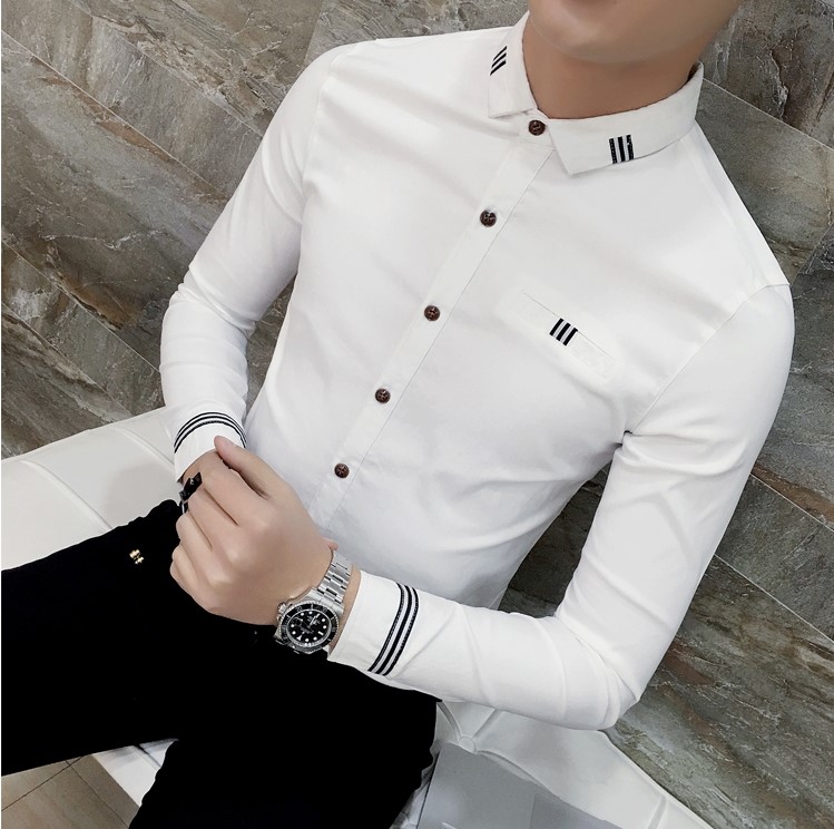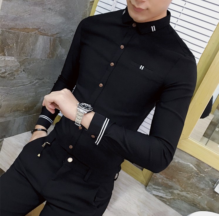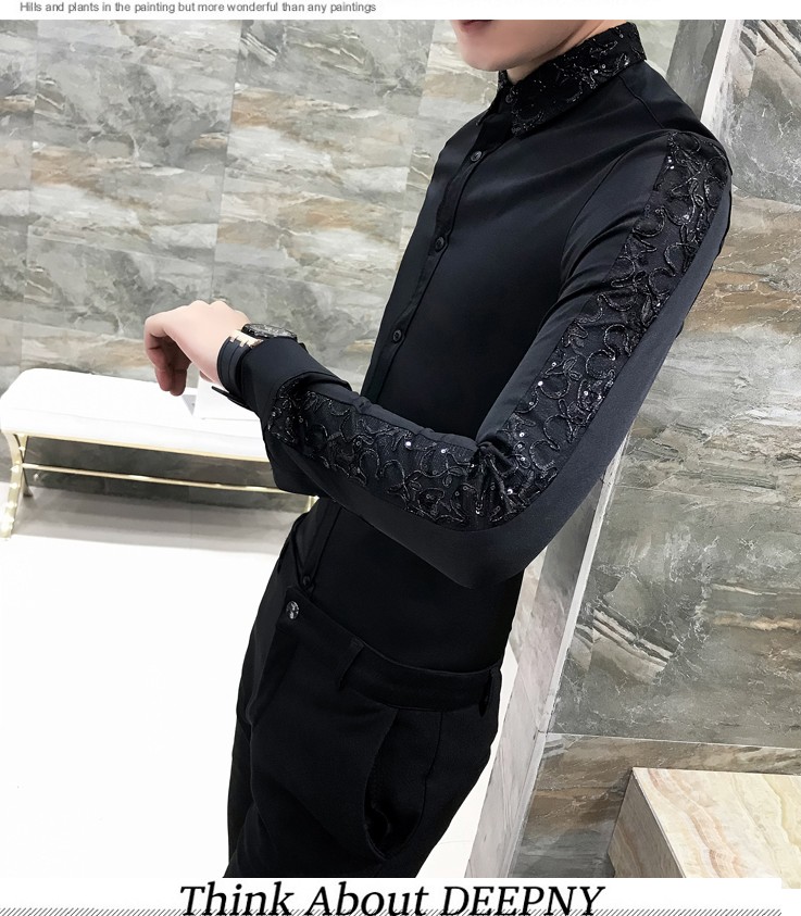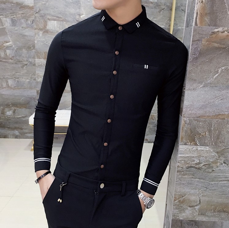 2019秋冬季保暖襯衫潮男韓版個性繡花長袖帥氣發型師修身加絨襯衣1入