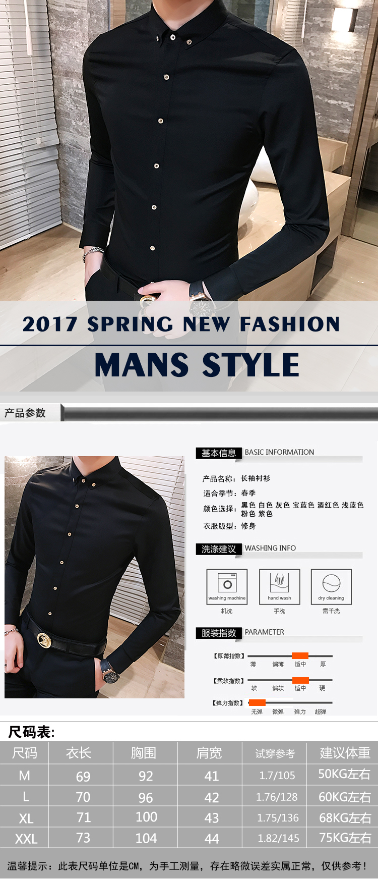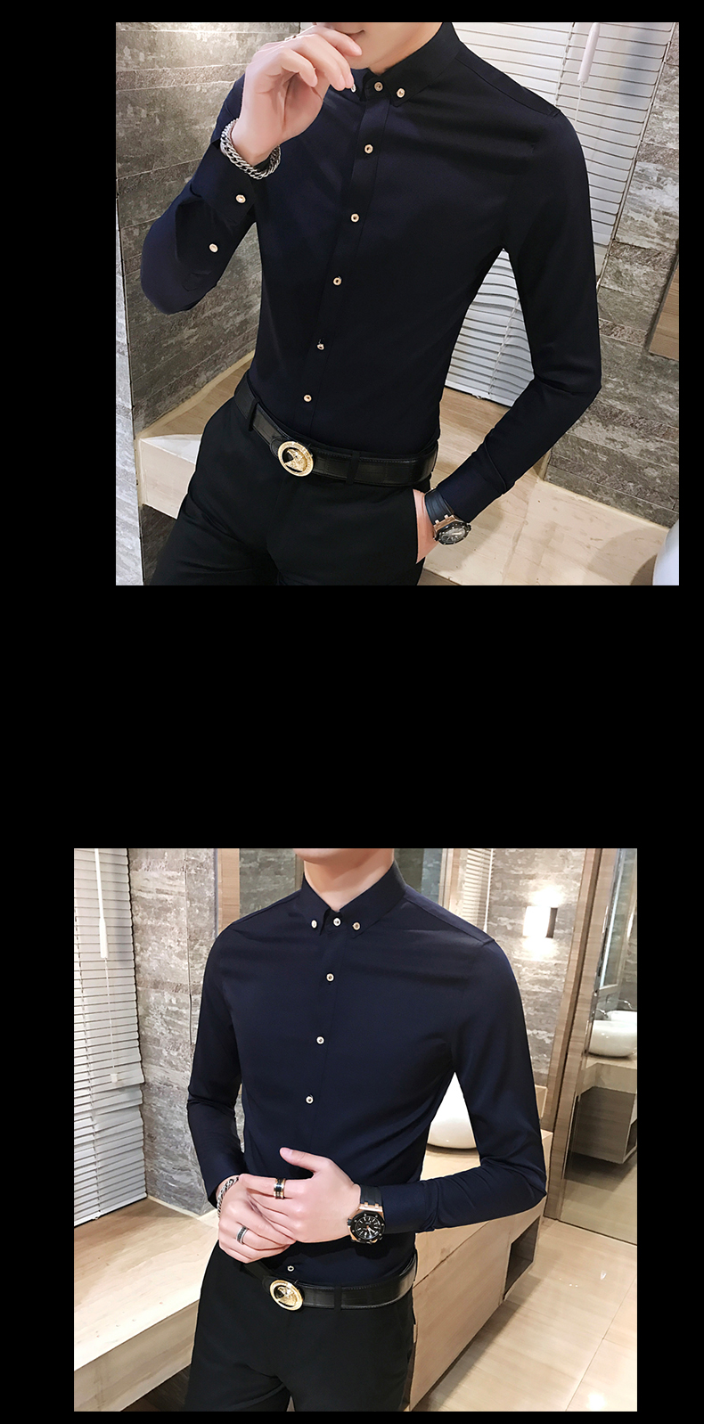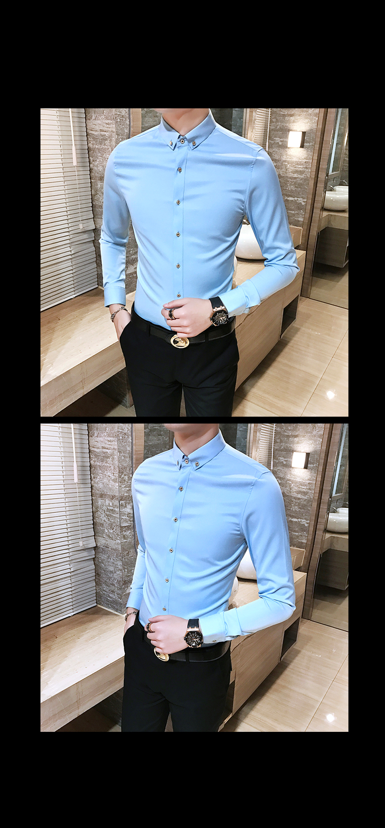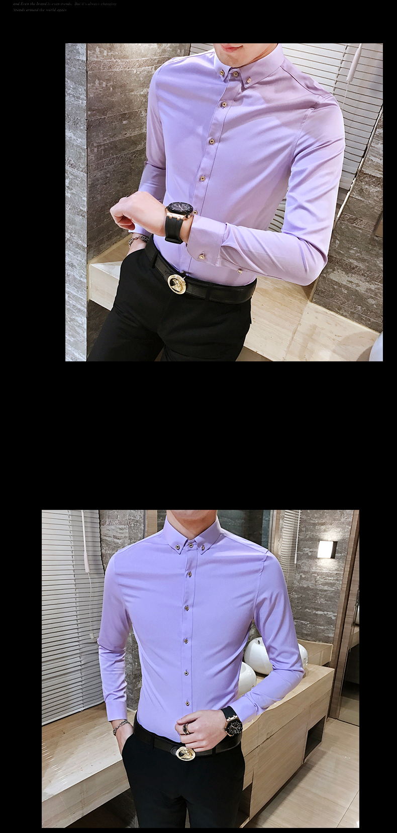 2019秋季新款長袖襯衫男士商務休閑純色立領襯衣男韓版修身酒紅色1入