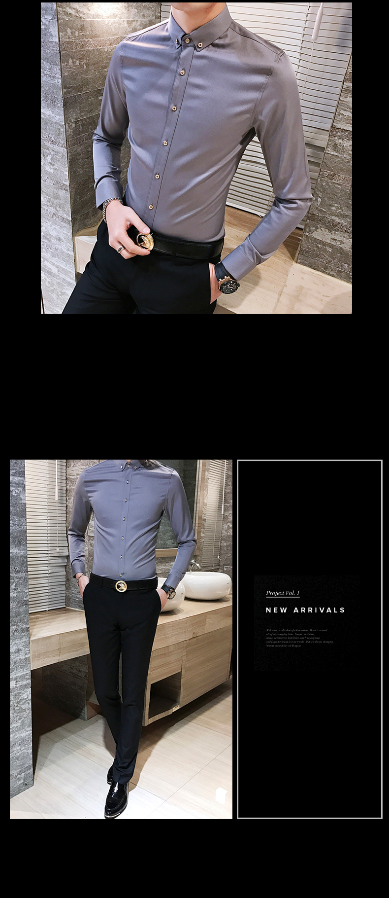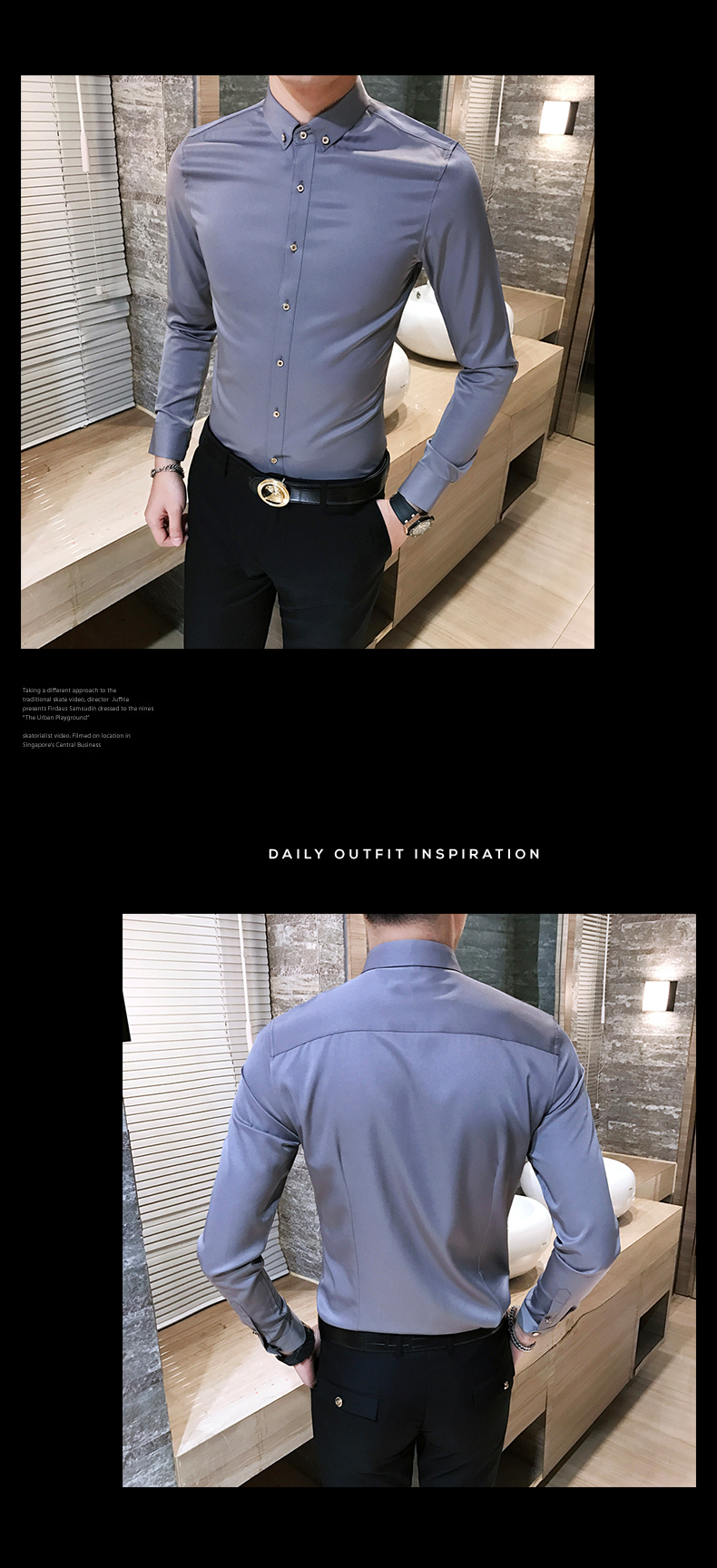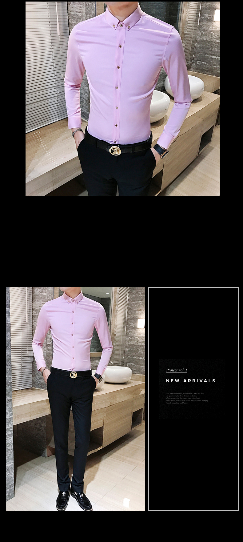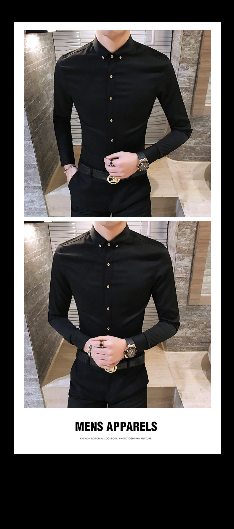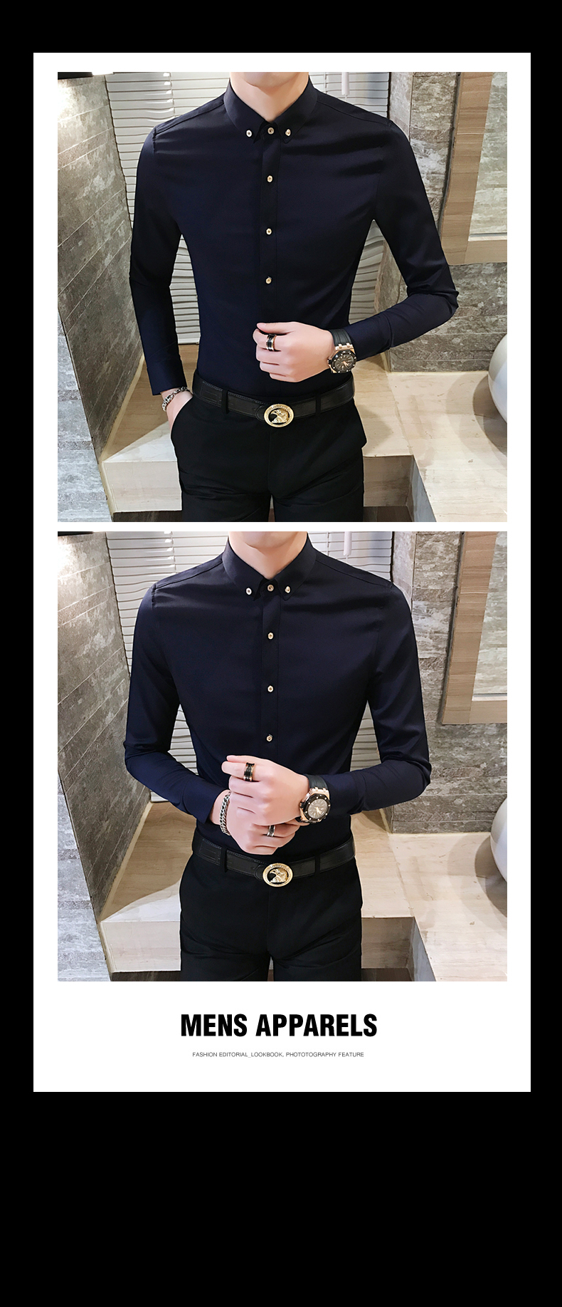 2019秋季新款長袖襯衫男士商務休閑純色立領襯衣男韓版修身酒紅色1入