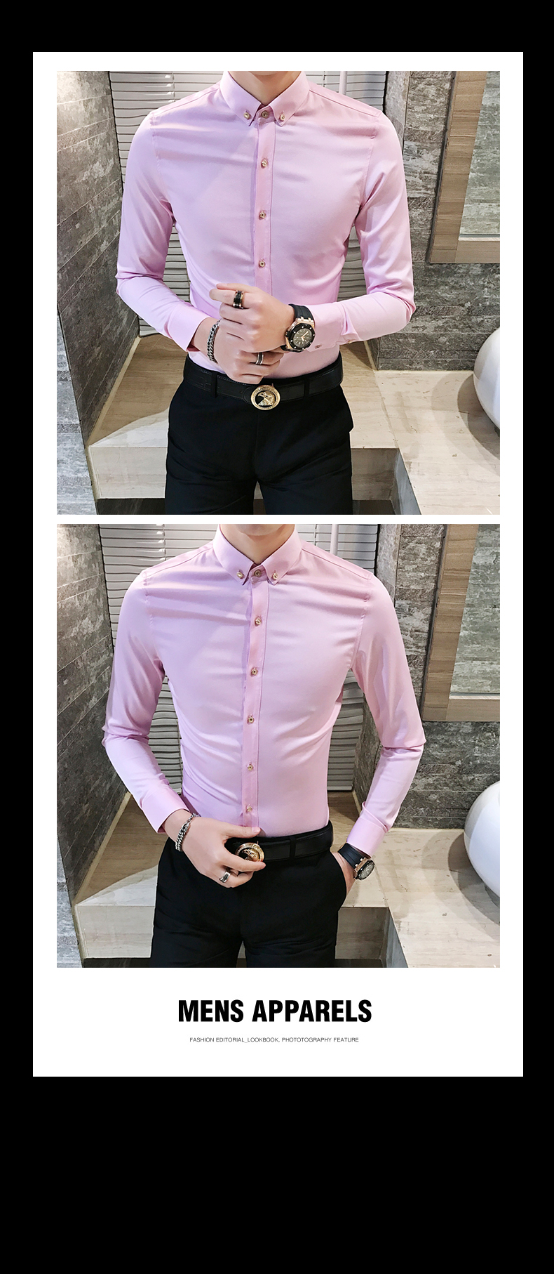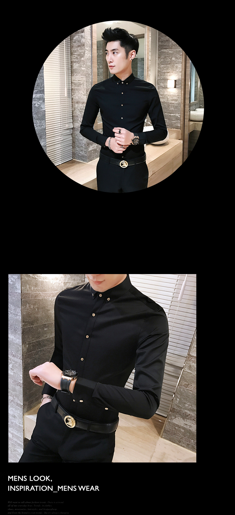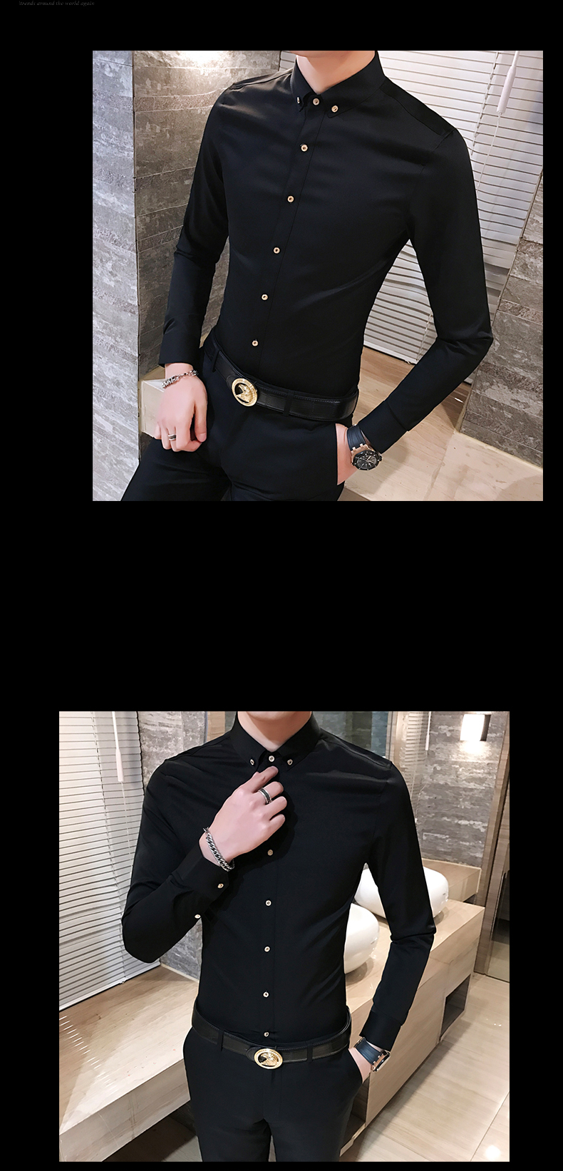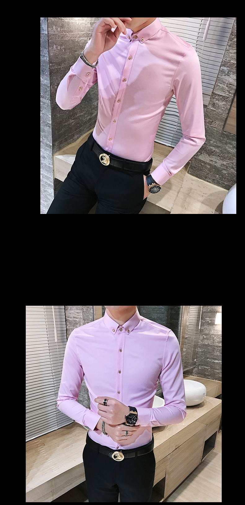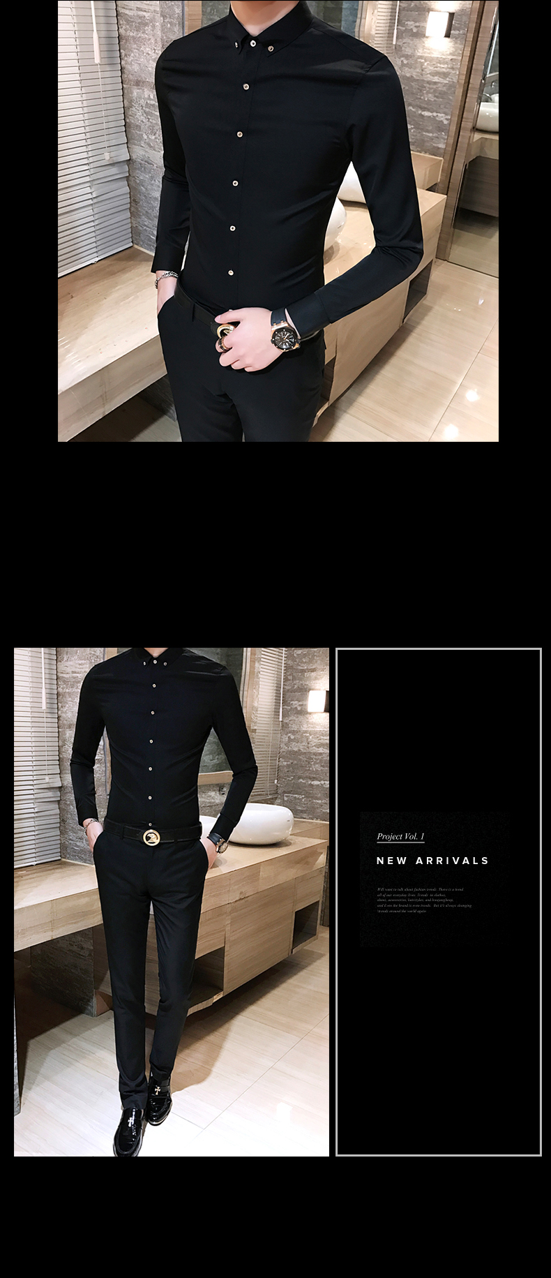 2019秋季新款長袖襯衫男士商務休閑純色立領襯衣男韓版修身酒紅色1入