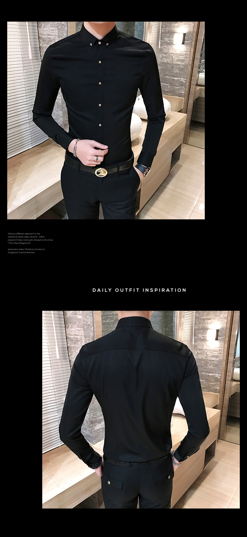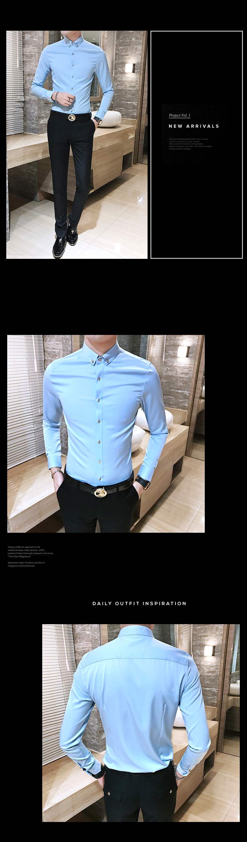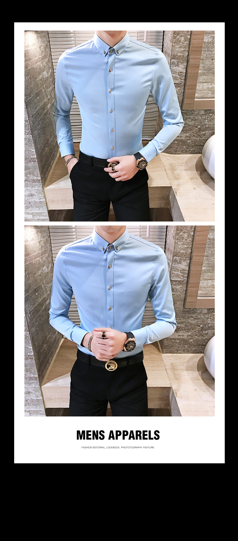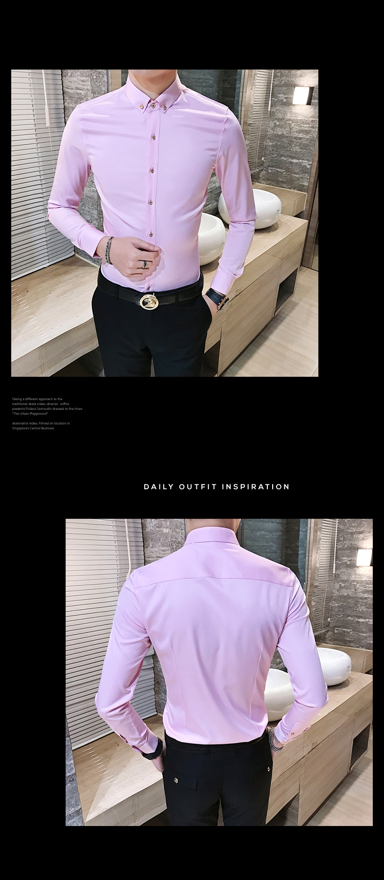 2019秋季新款長袖襯衫男士商務休閑純色立領襯衣男韓版修身酒紅色1入