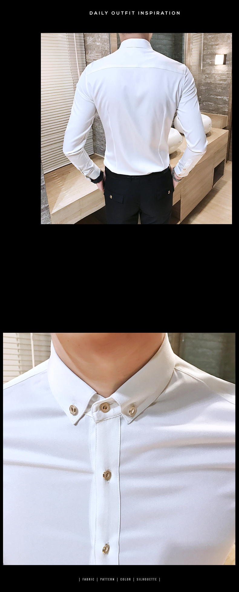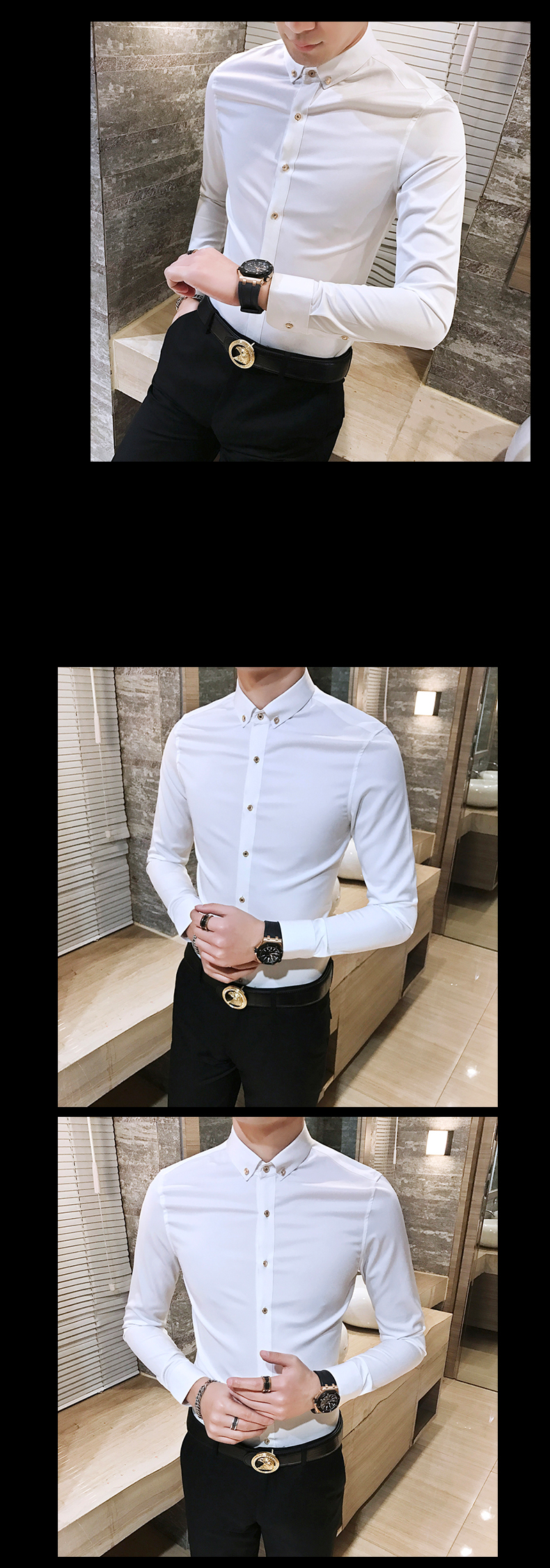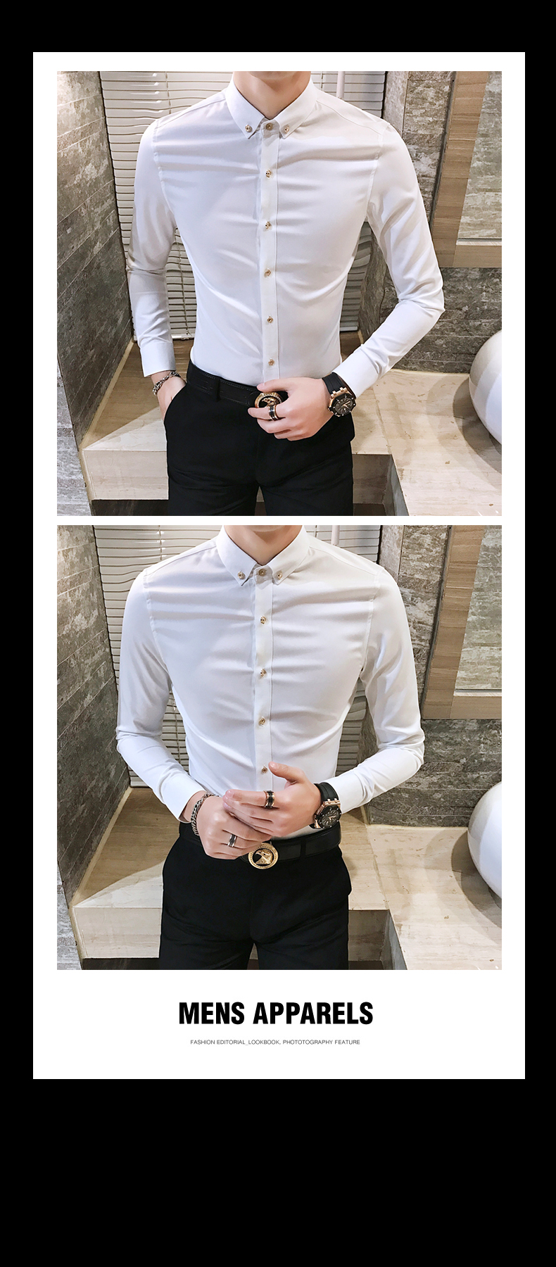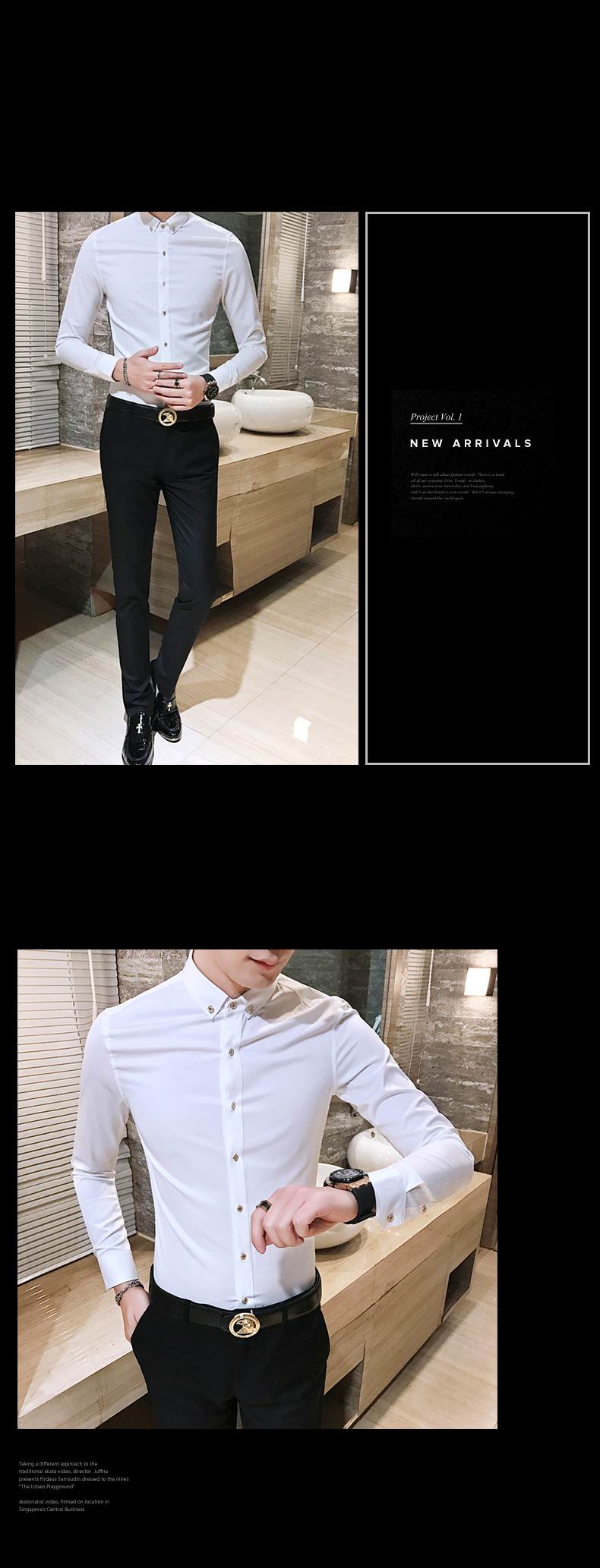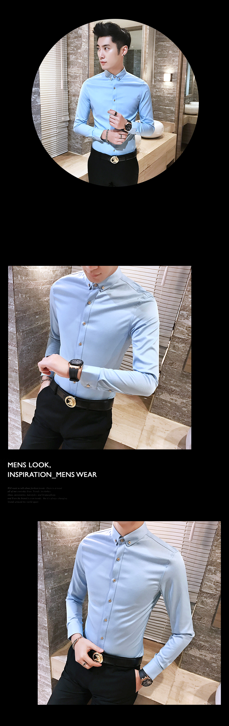 2019秋季新款長袖襯衫男士商務休閑純色立領襯衣男韓版修身酒紅色1入