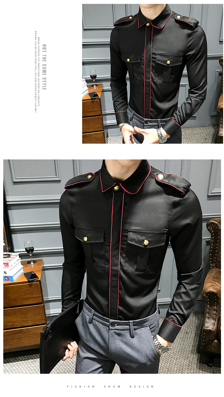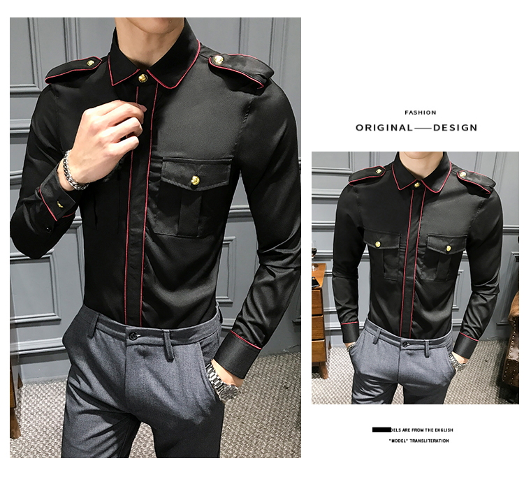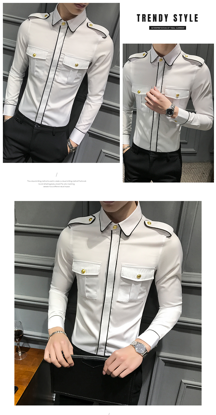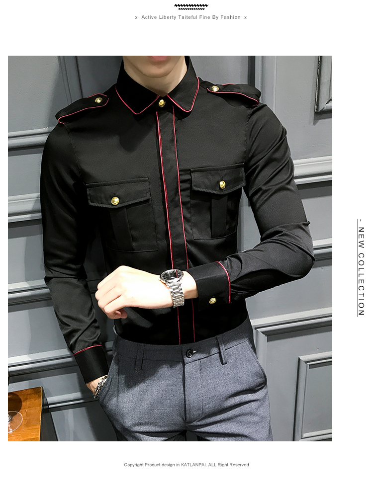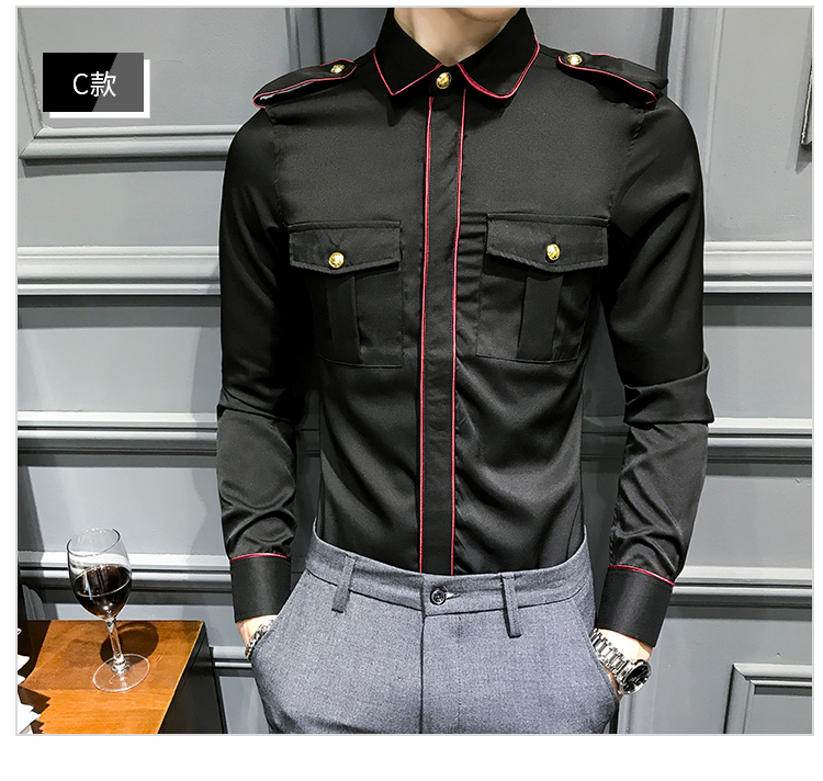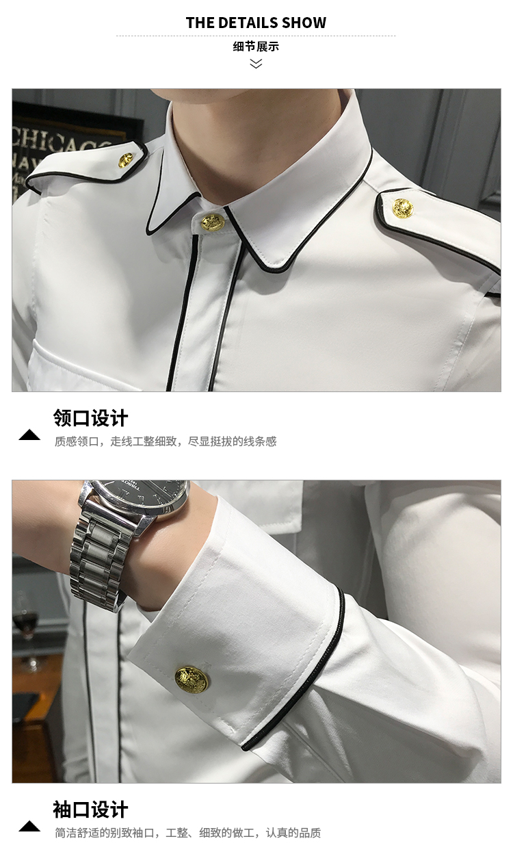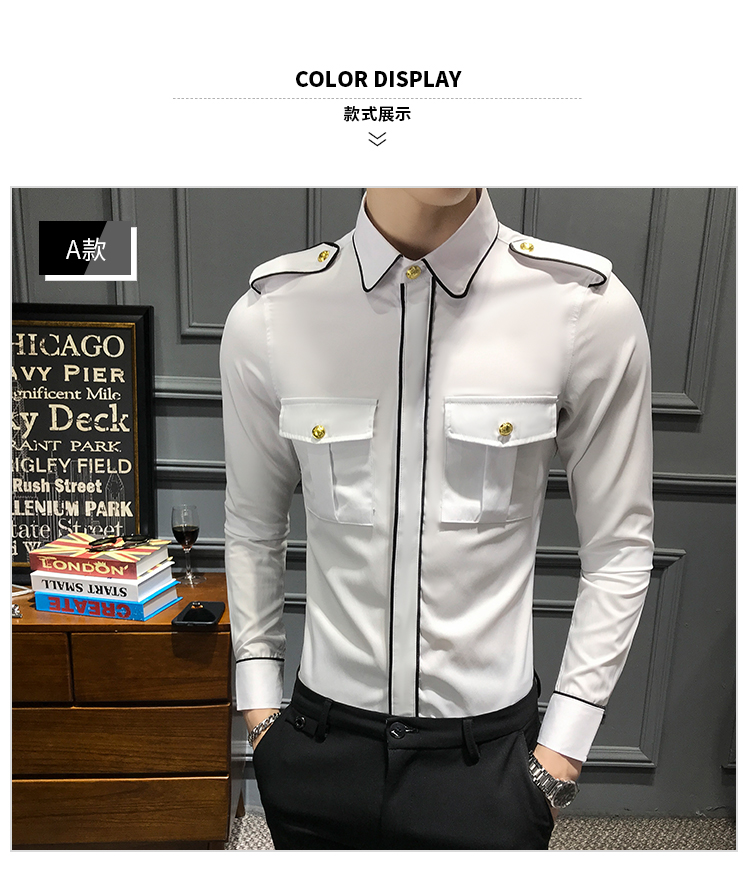 潮男社會小伙肩章空少長袖襯衣夜店酒吧KTV少爺長袖襯衫